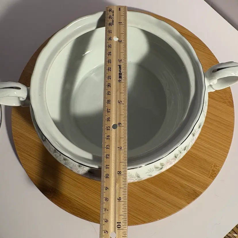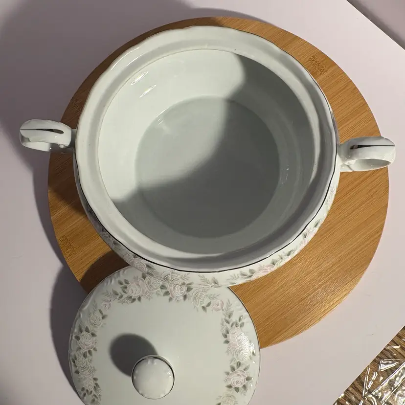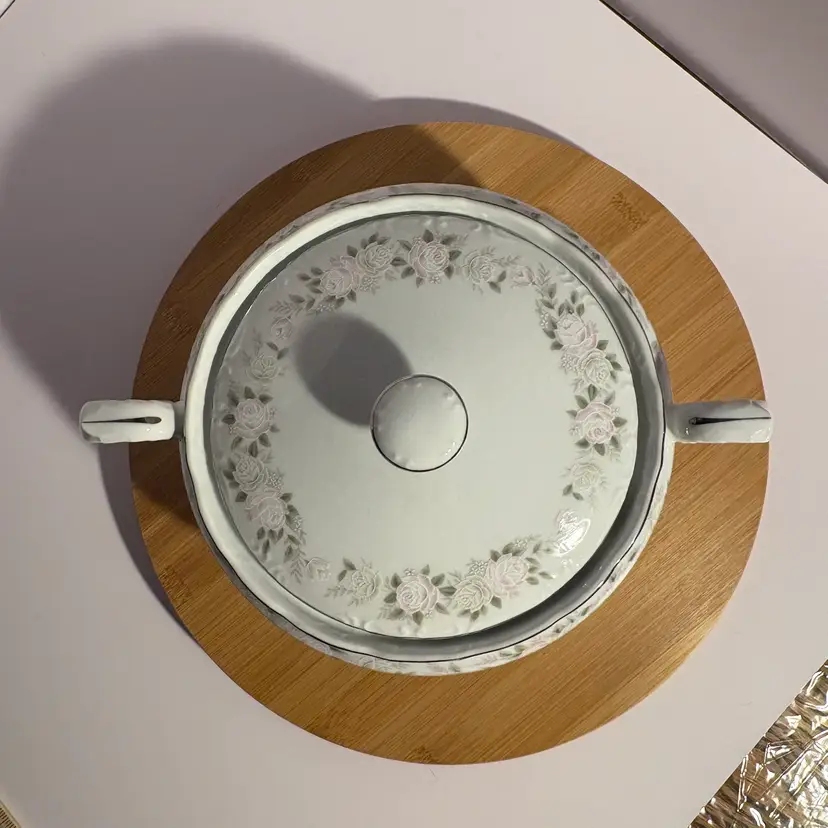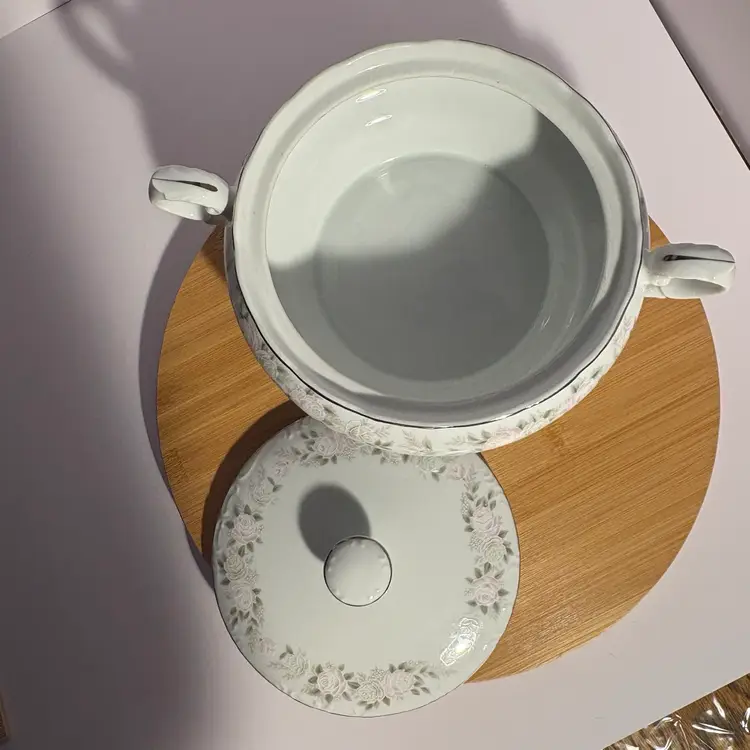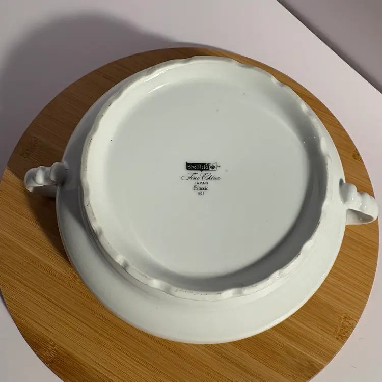 Vintage Sheffield Fine China Classic 501 Covered Serving Bowl with Silver Trim