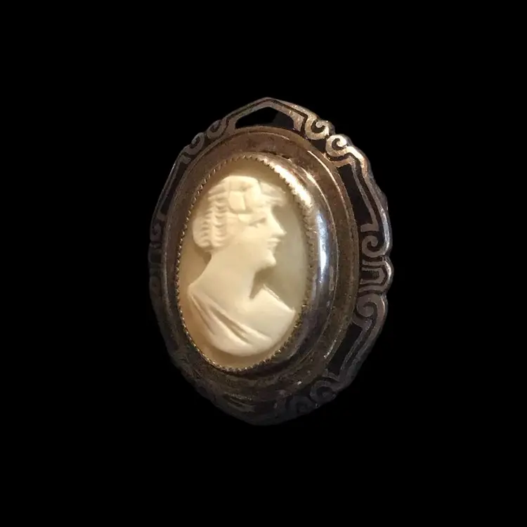 Enameled champlevé, silver plate shows some wear, 1-1/4”x1”. #391