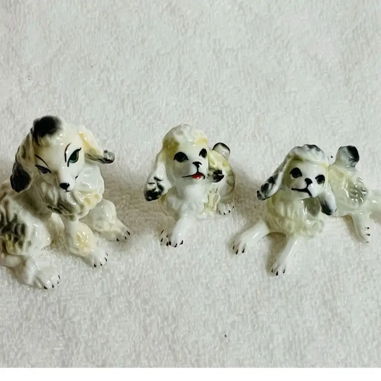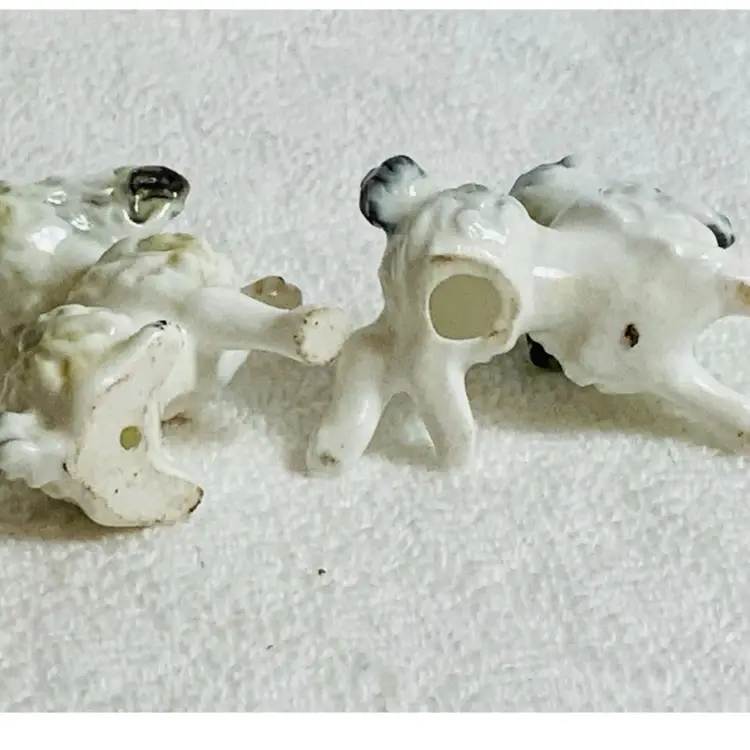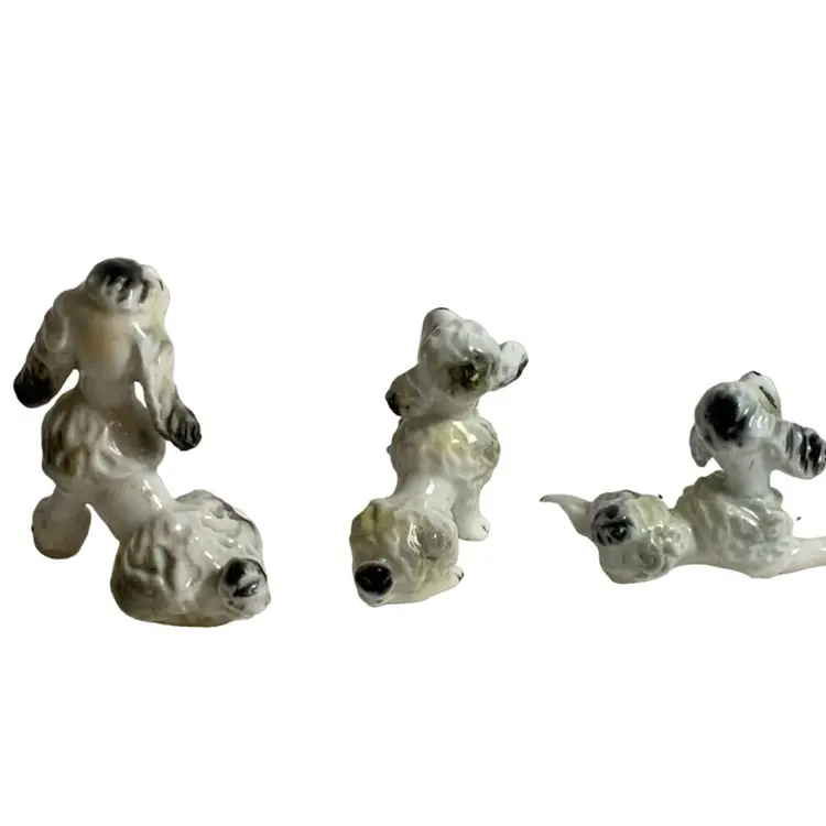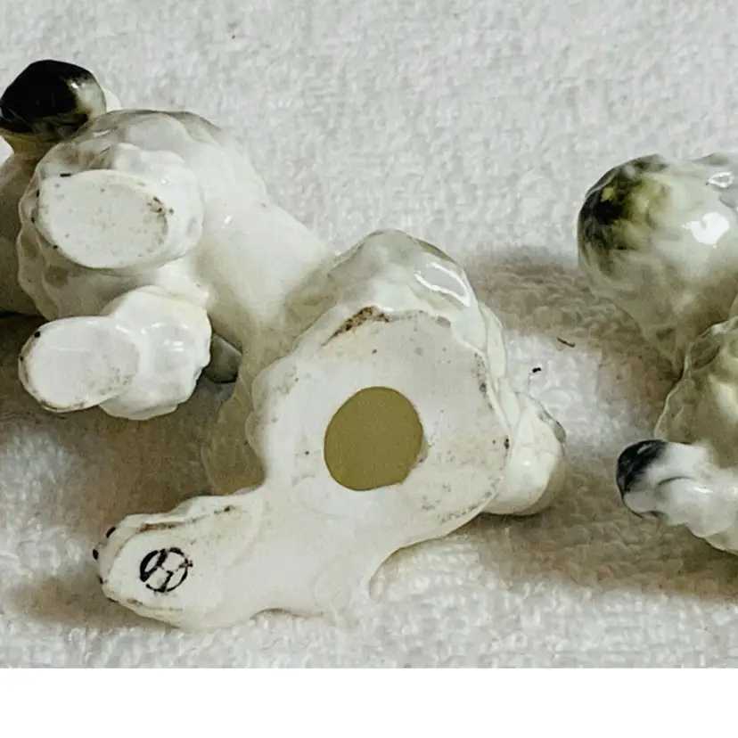 The larger poodle has makers mark on one of its hind paws. Largest poodle is about 2.5” tall and 2.5” wide, the other two are about 1.5” tall and 2” long. All in excellent condition