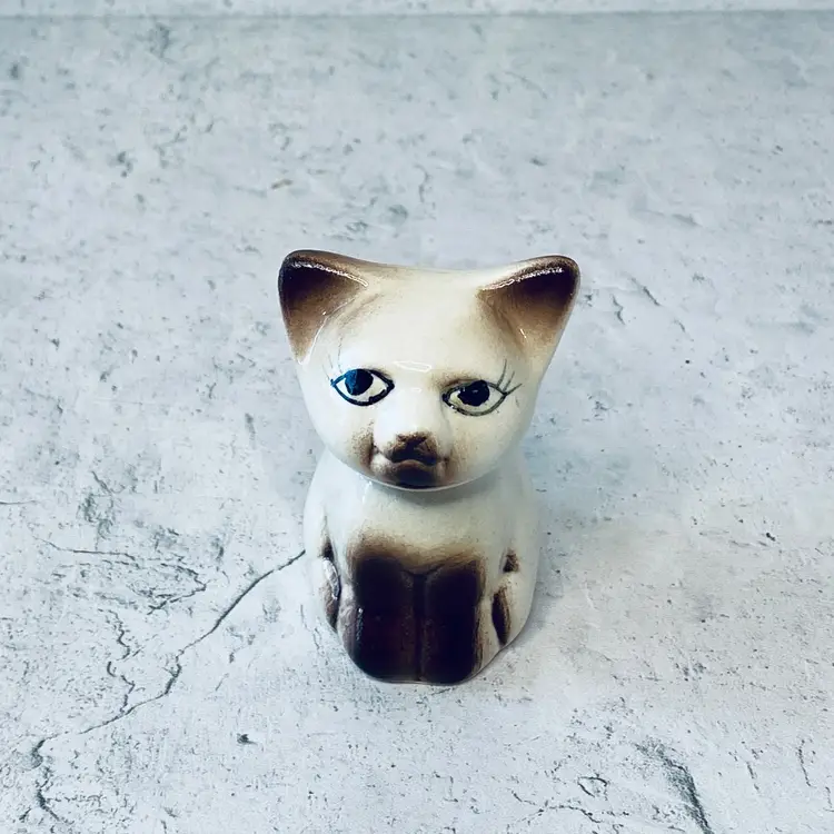 Measures approx. 5"H for the larger kitty, 3 1/2"H for the medium kitty and 2 1/2"H for the kitty toothpick holder. Stoppers are present. There is a manufacturers rub mark on the salt shaker.