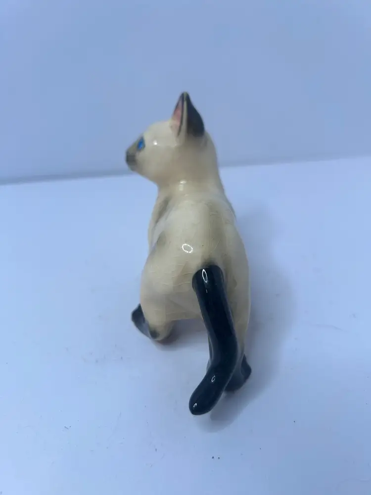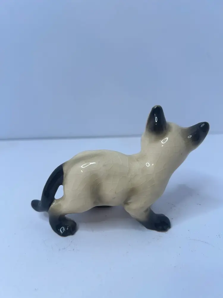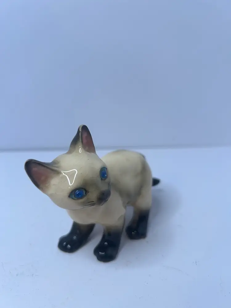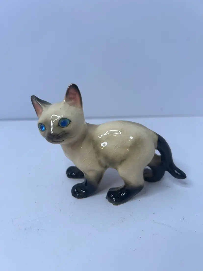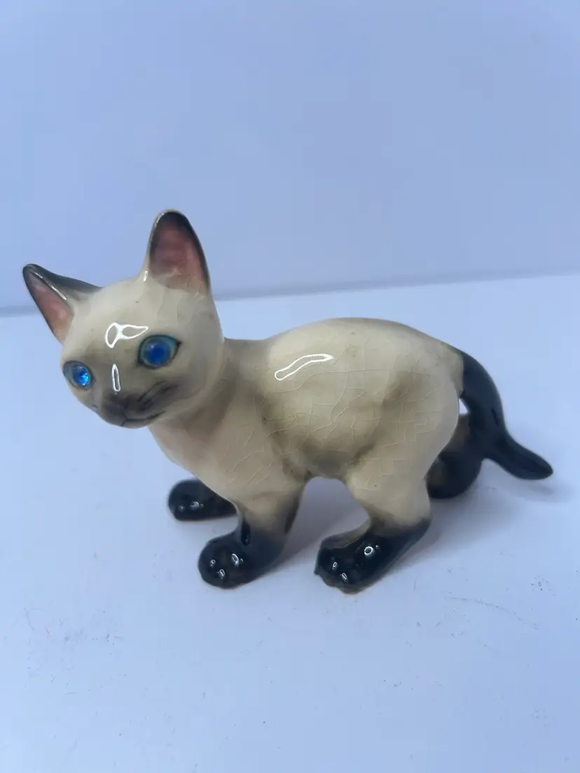 Vintage Small Siamese cat figurine with blue eyes. Some glazing due to age. Made in Japan. No chips no cracks. Used.