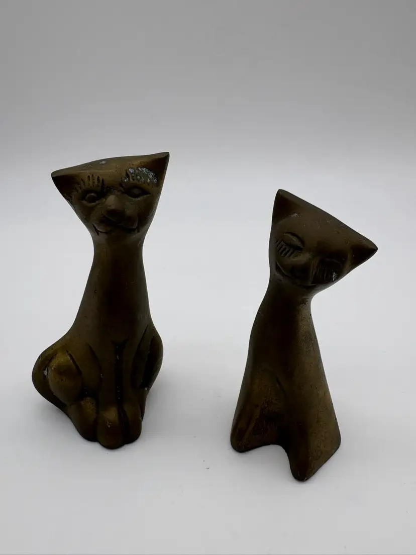 Vintage Siamese Cats - Mid Century Brass Figurines, Boho, Kitsch