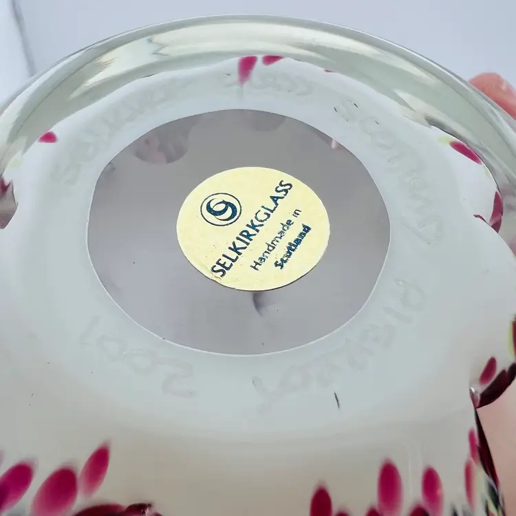 Spectacular paperweight, designed and handcrafted in 2001 by Selkirk Glass, Scotland. Signature reads “Selkirk Glass Scotland Pierrot 2001”. Excellent condition! Comes with the stand too!