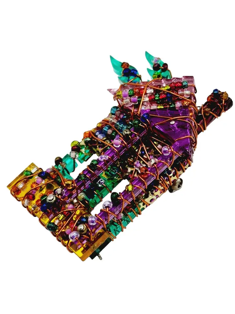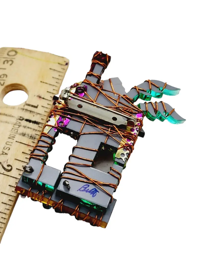 Vintage Signed Acrylic 80s Hand Wire Brooch