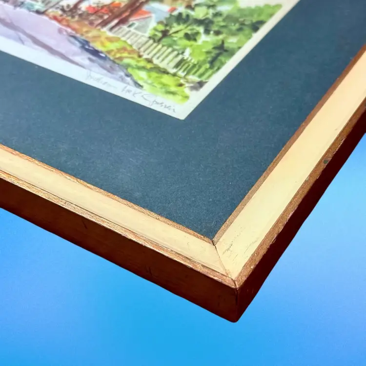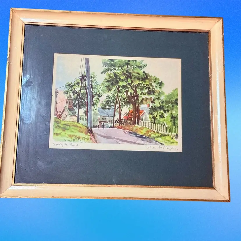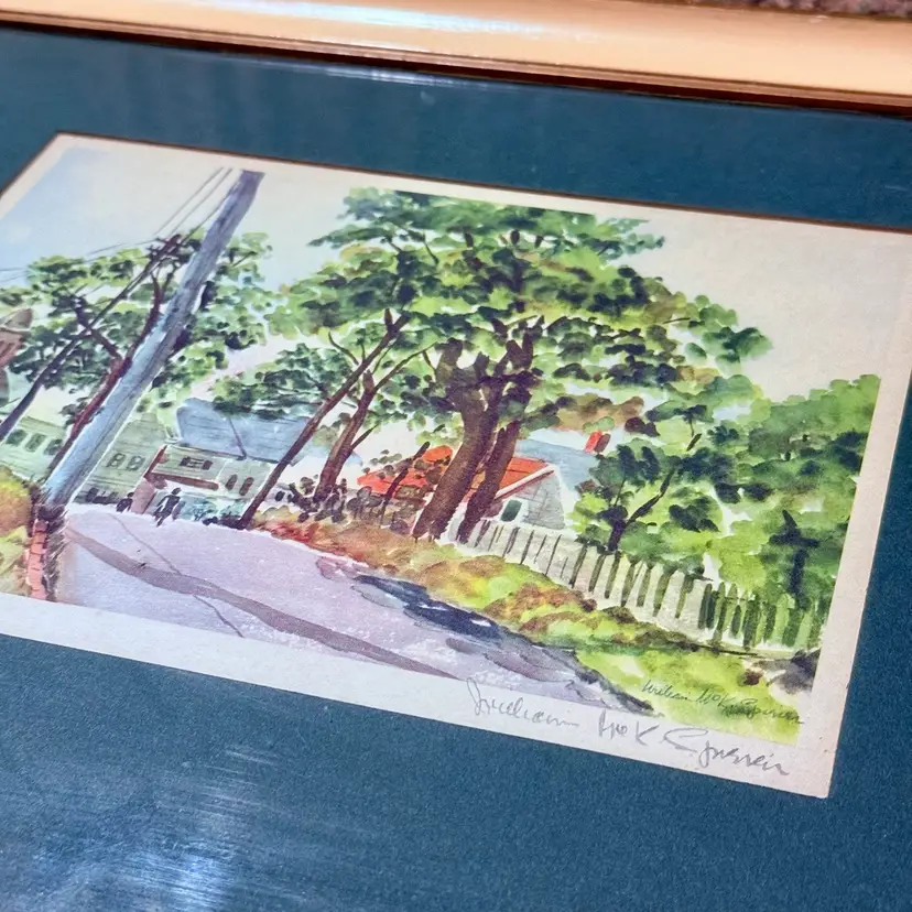 Approx 15.75” x 13.75”; signed by artist William McK Spirier; good condition (some wear to frame, commensurate with age but no issues).