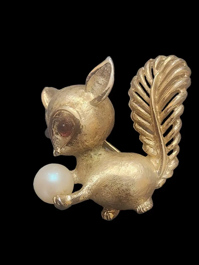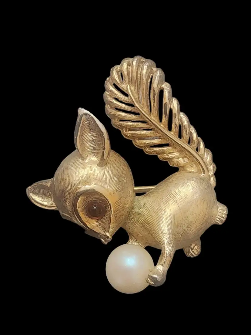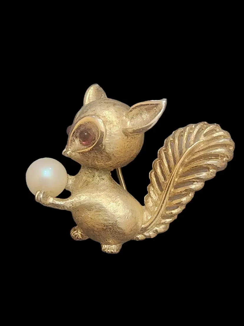 Vintage Signed Boucher #0816b Tiny Squirrel Brooch (A4890)