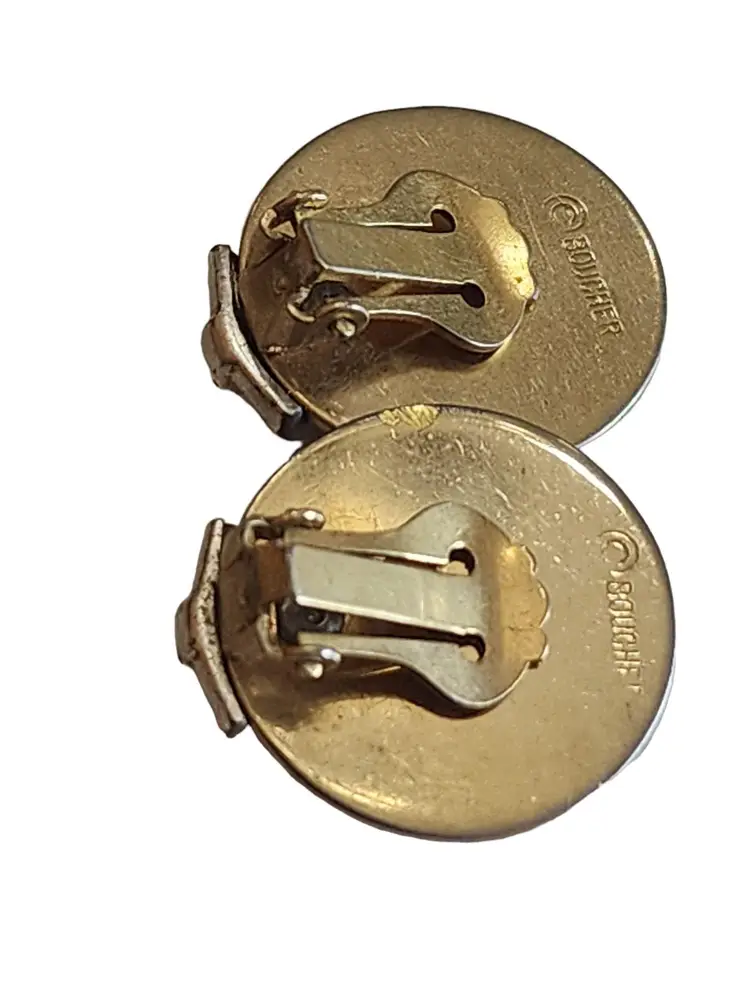 Size: Almost 1" Condition: Good vintage; 1 darkened stone Era: Circa 1960s Signed: Boucher (both are signed)