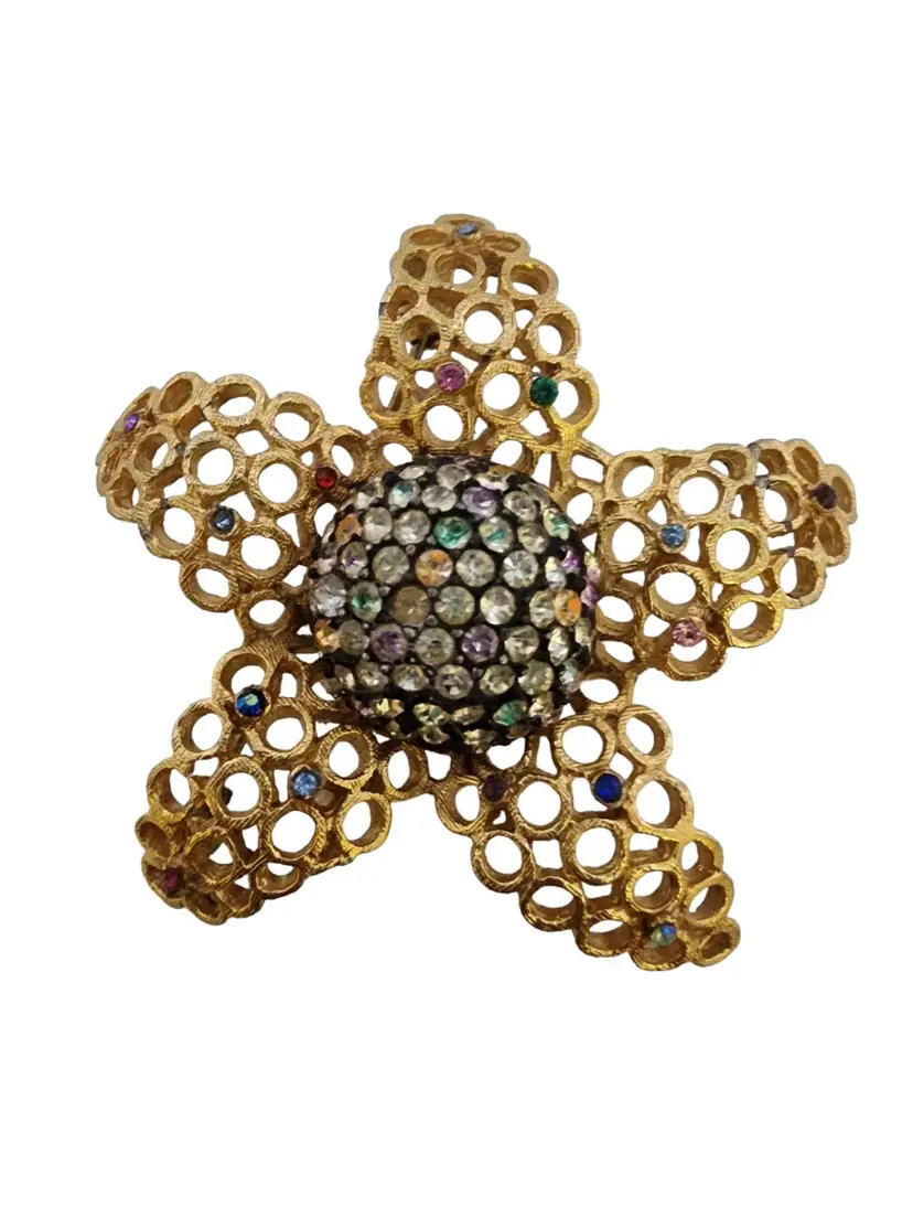 Size: 2.25" Color: Gold, Clear Condition: Good vintage Signed: Coro
