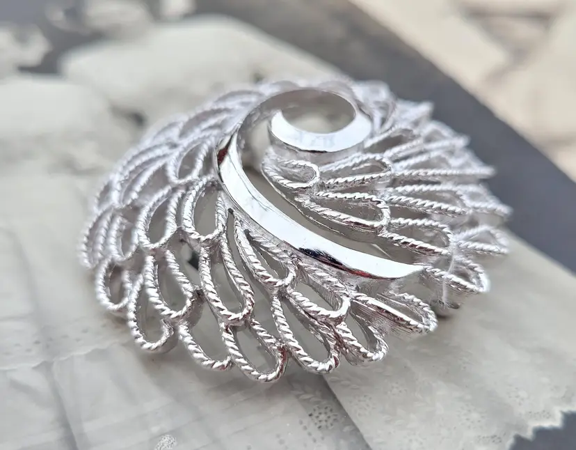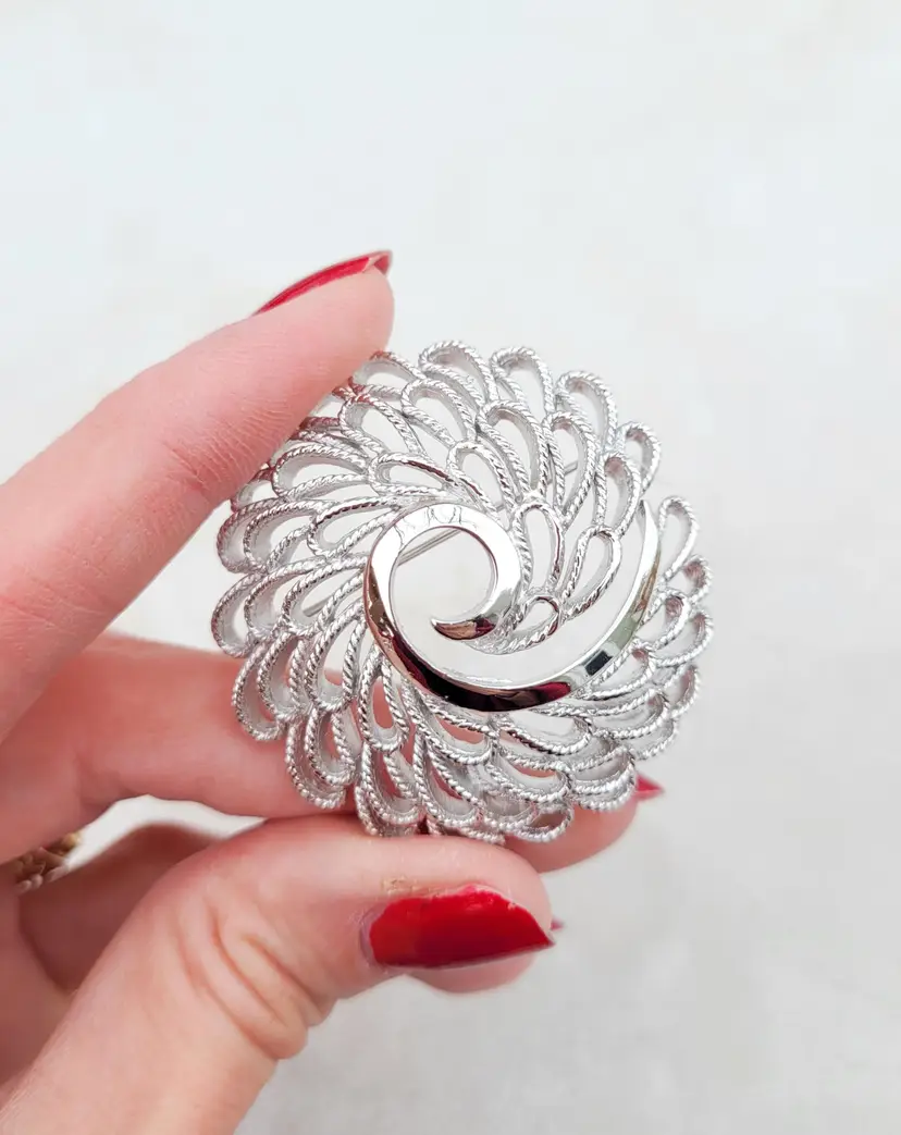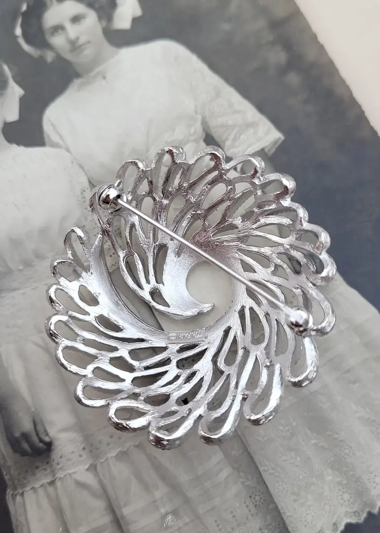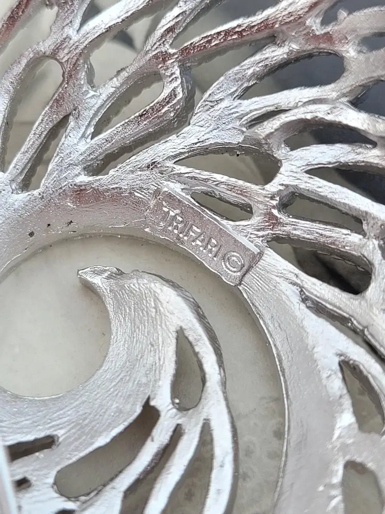 Lovely silver tone signed Crown Trifari brooch! In good condition, please see pictures for details and measurements.