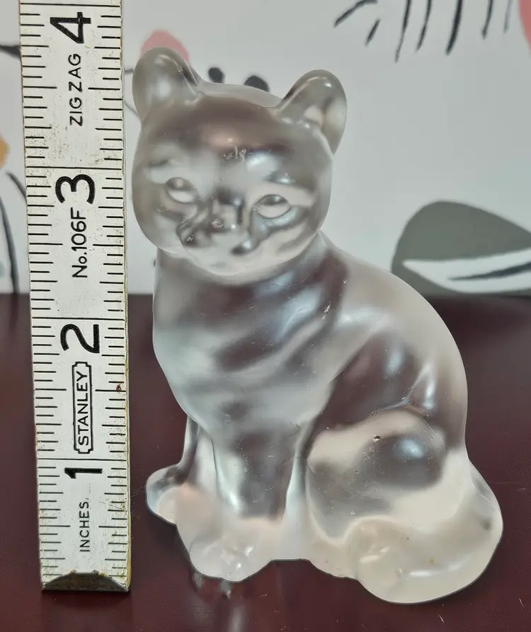 This adorable Fenton glass cat is in excellent, used condition, with no appreciable chips or cracks. Please note that there are some very mild scratches on the figurine but difficult to see unless you are extremely close to the cat. Measurements are depicted in the pictures of the item or listed in the description of the item. Please review the photos, as they are part of the item description. Photos will always reveal noticeable defects, as will my description. Any white “blemishes” that are not pointed out in this section are from the lighting that I use for my photos. If you need clarification, please reach out to me.