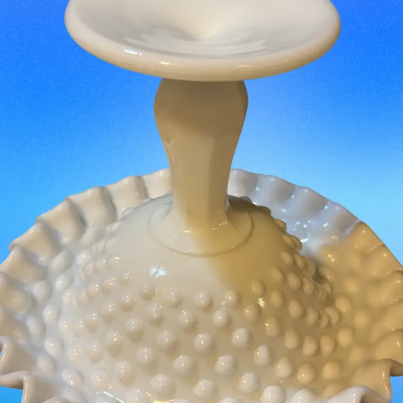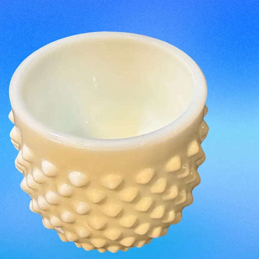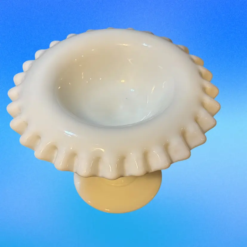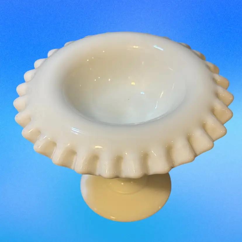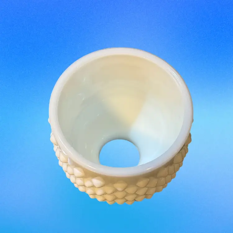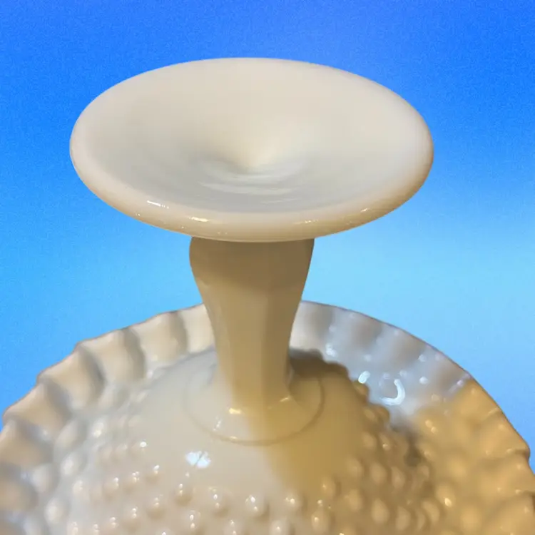 Approx 7.75” tall to top, 4-7/8” tall to top of fairy lamp bottom, 6.25” across at mouth, 3.25” across at base.