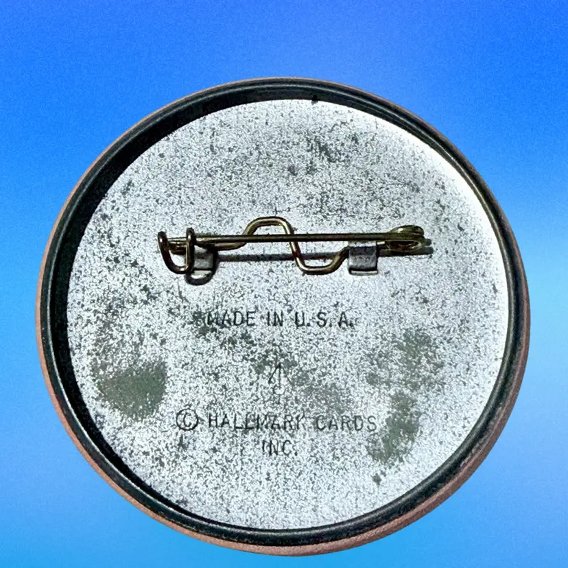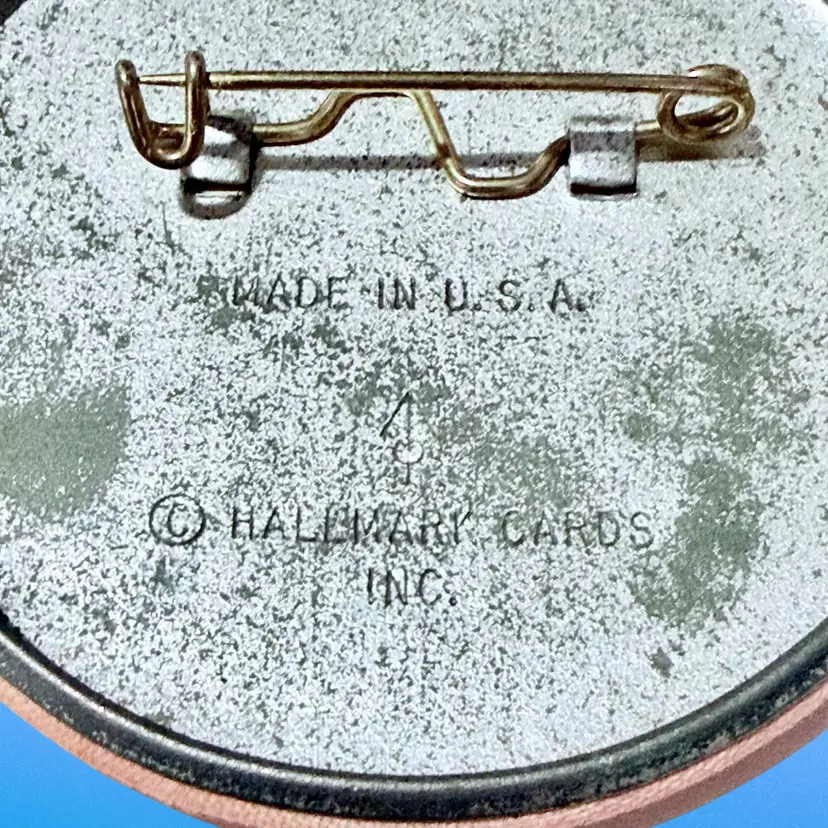 Approx 2.25” across; back reads Made in USA & Hallmark Cards Inc; good vintage condition (some wear but could possibly be cleaned up some).