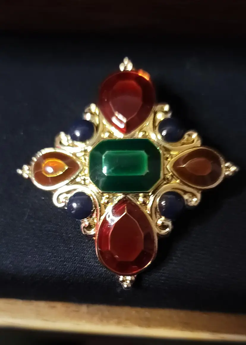 Beautiful Jay Strongwater Multicolor Enamel Maltese Cross Pendant / Scarf Slide. Could also be used as a pendant or slide on belt.