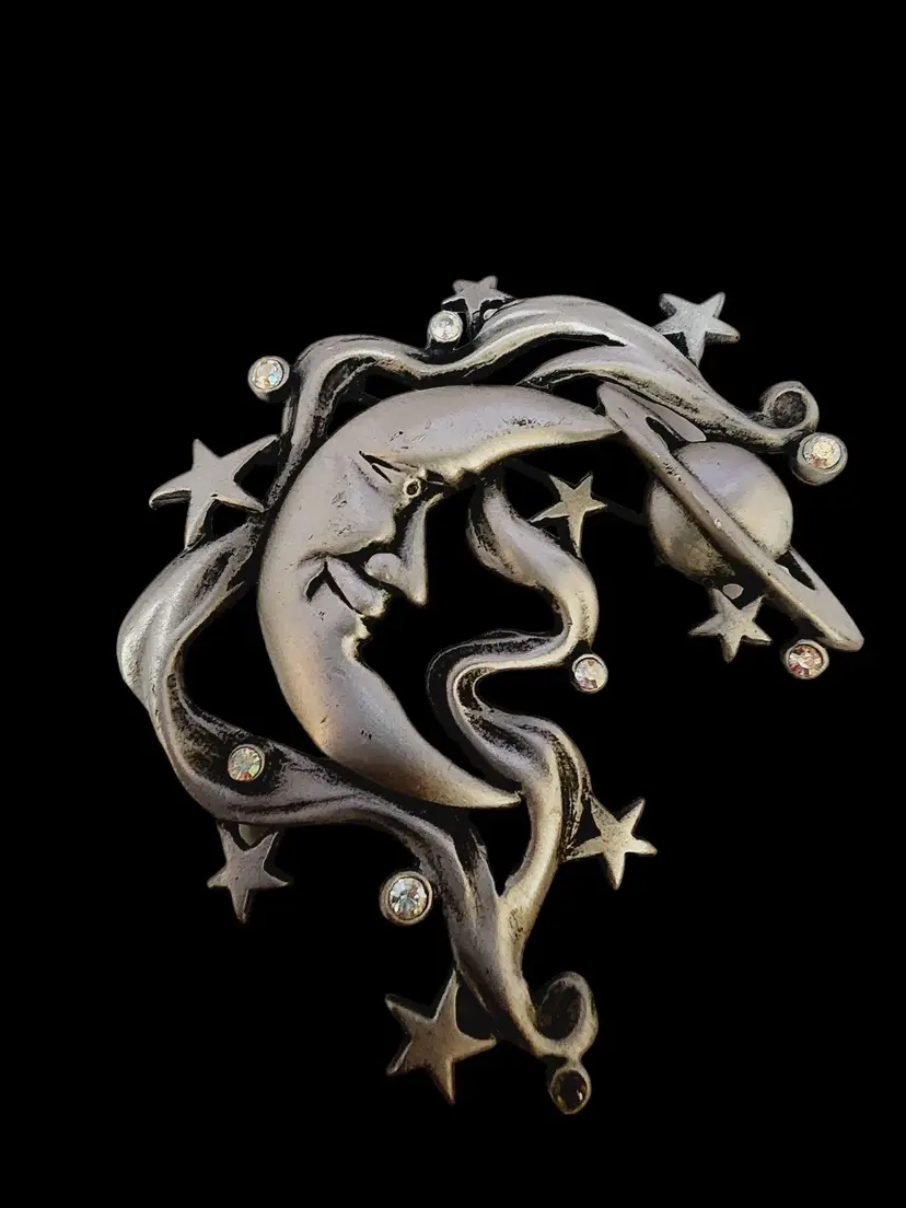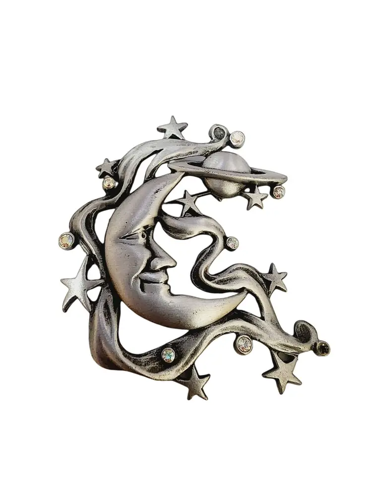 Vintage Signed JJ Jonette Saturn Moon Brooch (A4343)