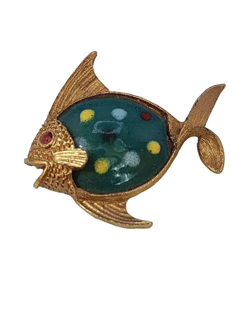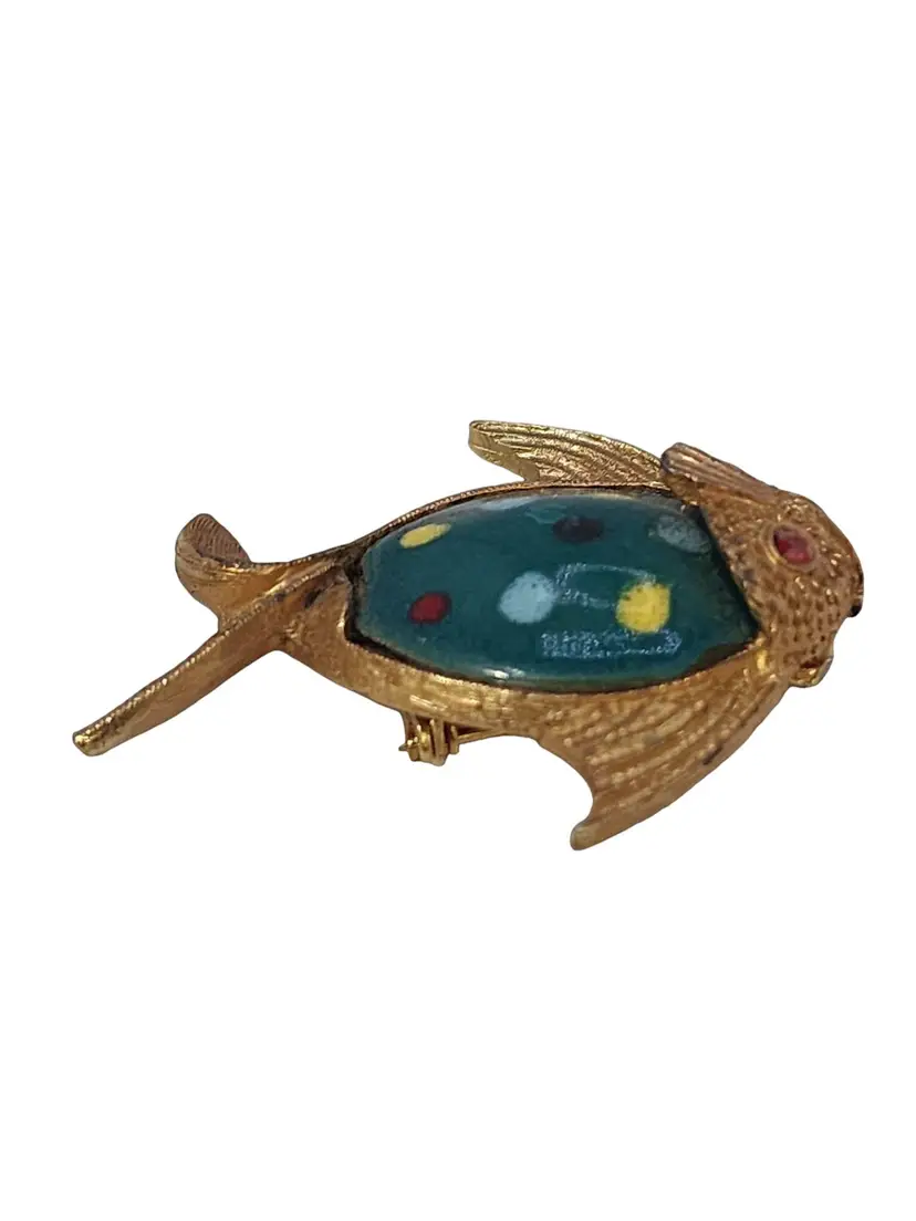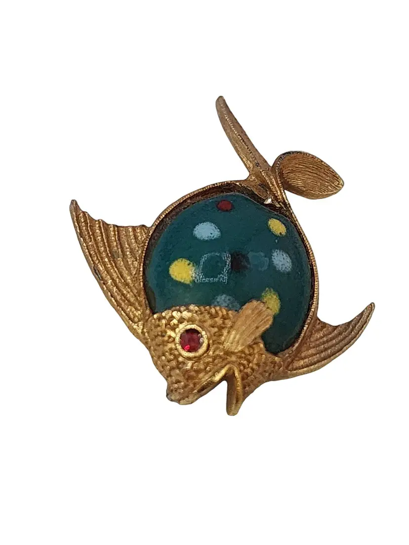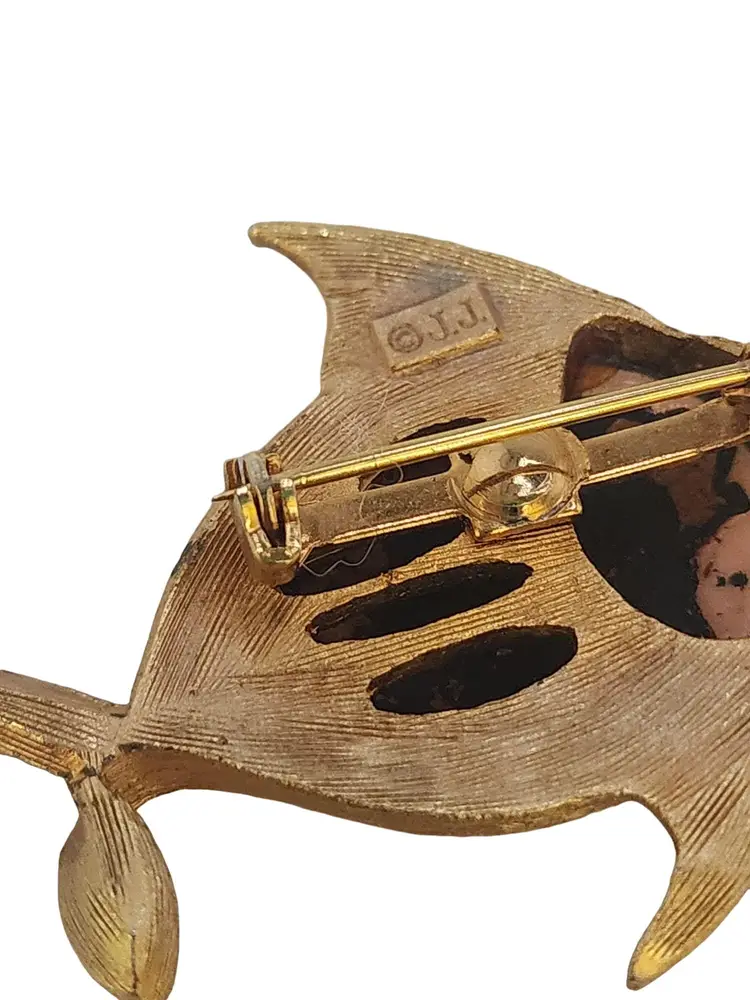 Size: 1.75" Color: Green, Gold Condition: Very good vintage Signed: JJ Details: Well made!