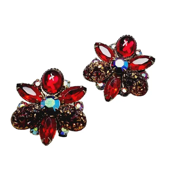 Size: 1.5" Color: Red, Gold Condition: Very good vintage Signed: Judy Lee