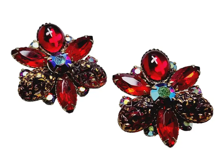 Vintage Signed Judy Lee Molded Glass Earrings (A1401)