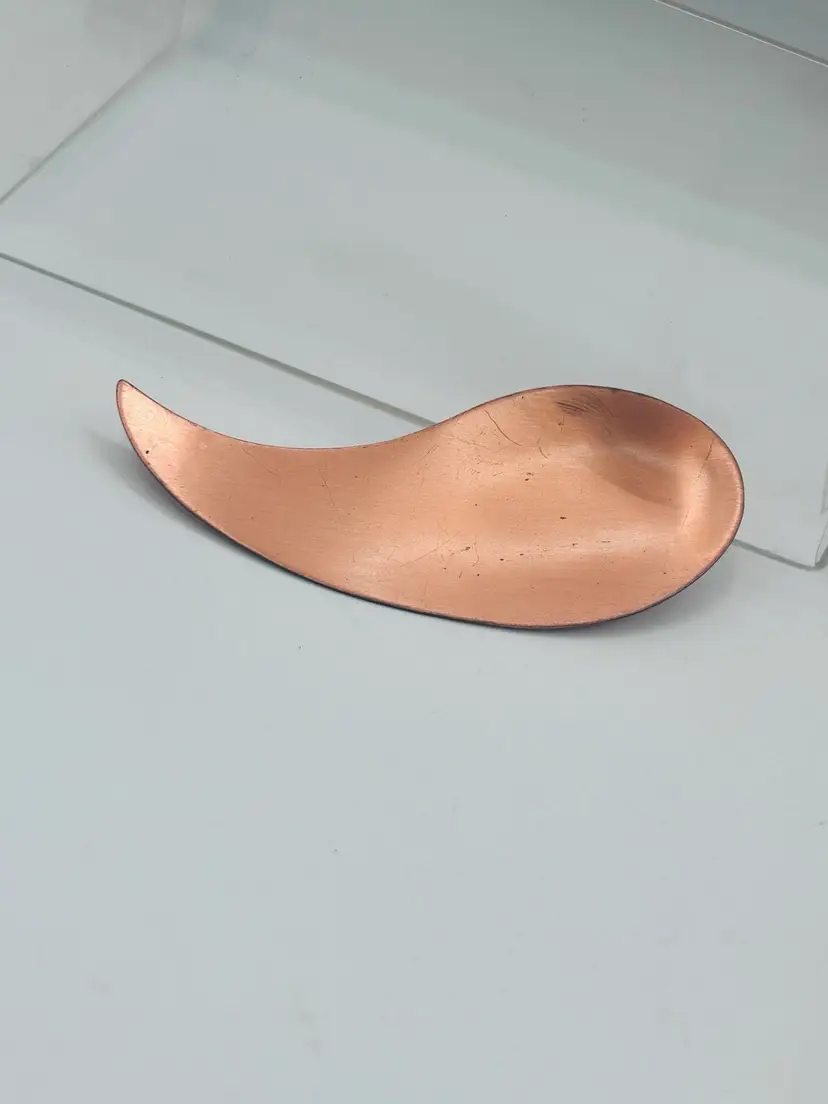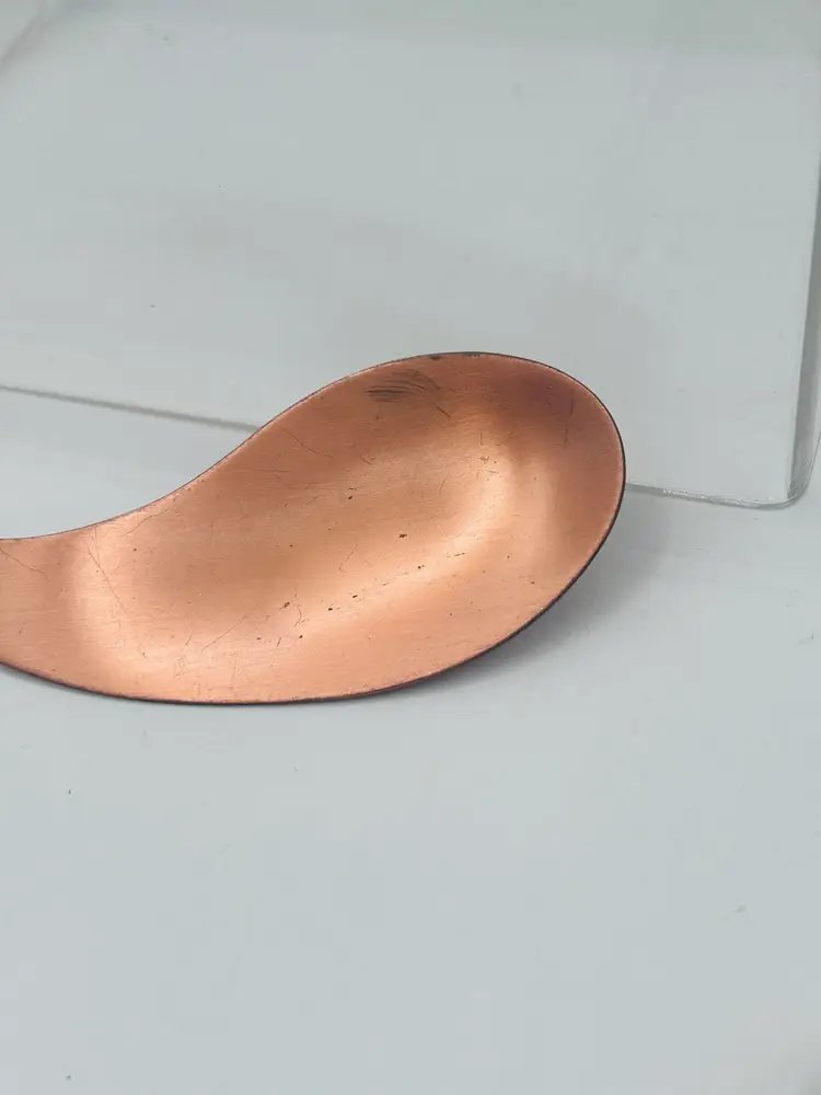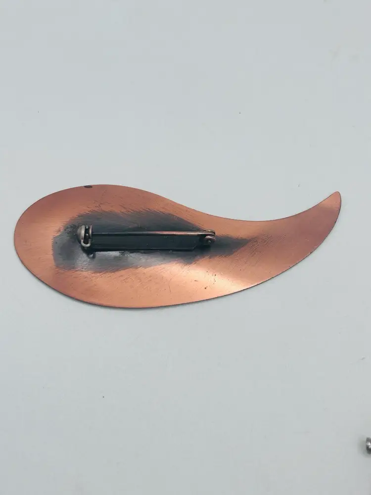 Abstract 4 inch long, signed copper brooch