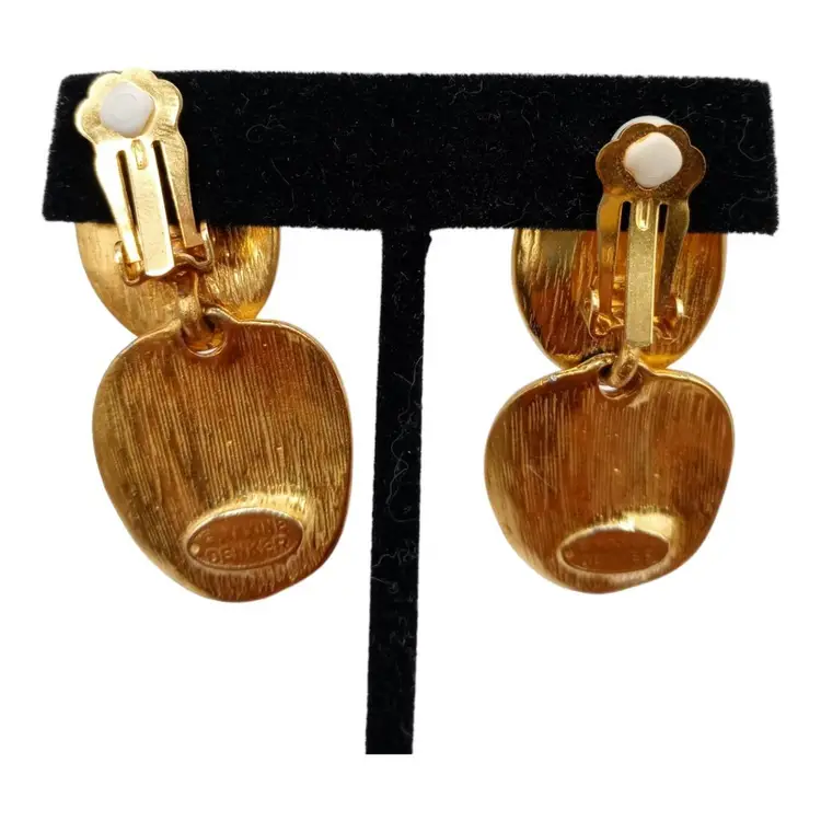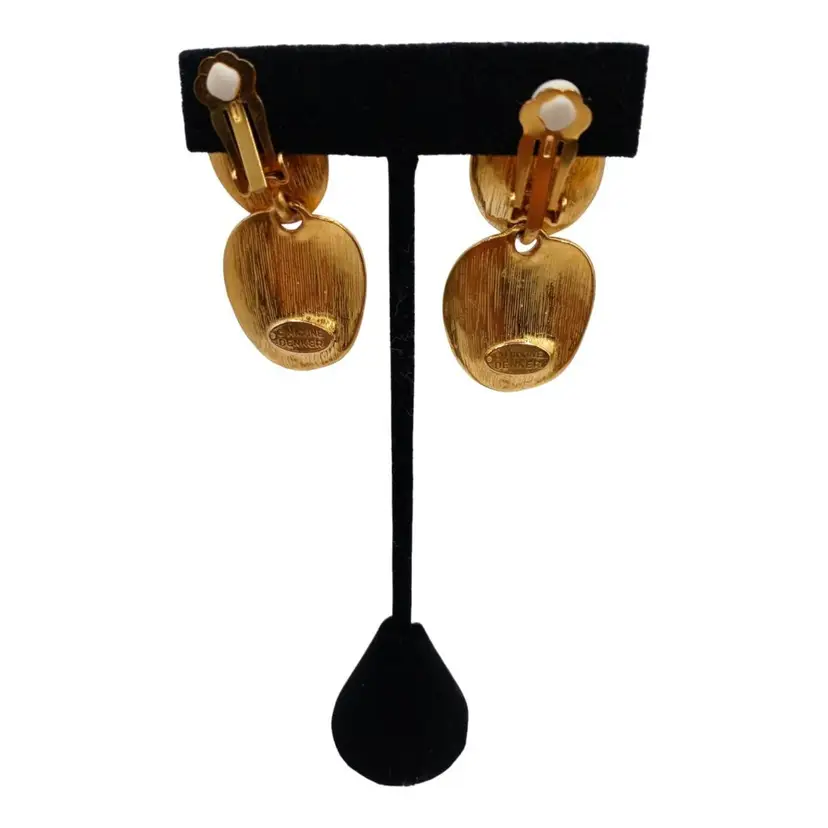 Capture the timeless allure of these Vintage Signed Maxine Denker Brushed Gold Door Knocker Earrings! Crafted with elegance in mind, these earrings boast a chic 2-inch length, exuding sophistication and style. The earrings are in excellent condition with no damage found. Kindly refer to the included photos to assess the condition of the item. Please Note: As a vintage item, these earrings are sold as described. While they showcase remarkable beauty, they may exhibit slight signs of wear reflective of its age. While I strive to disclose any noticeable imperfections, the nature of vintage items may reveal slight age-related nuances that do not hinder their charm or wearability.