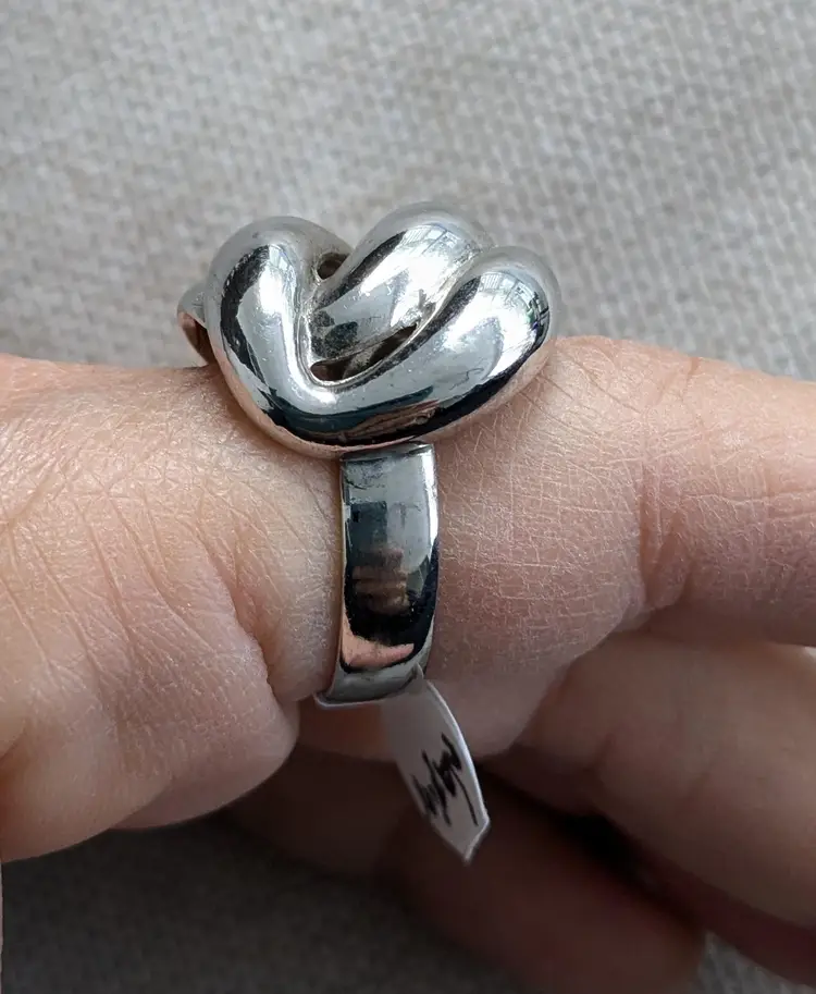 The face of the ring is 7/8" across. Adjustable, currently a size 8. Marked Napier