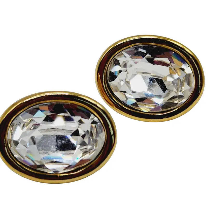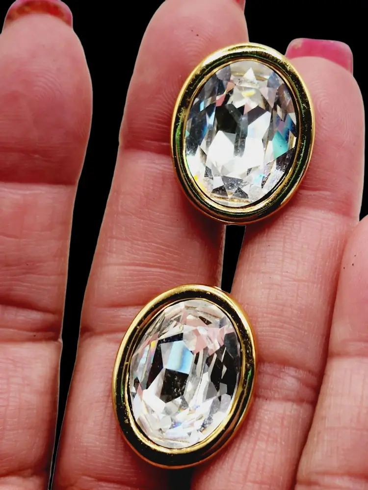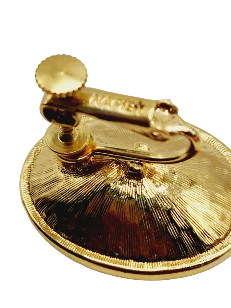 Size: almost 1" Color: Clear, Gold Condition: Very good vintage Era: Circa 1960s Signed: Napier