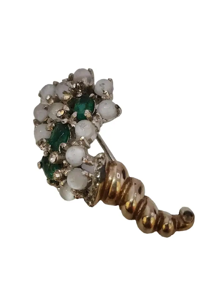 Vintage Signed Reja Sterling Moonstone Cornucopia Brooch (A3681)