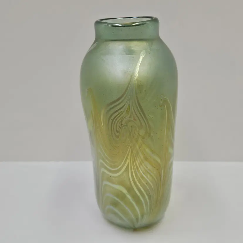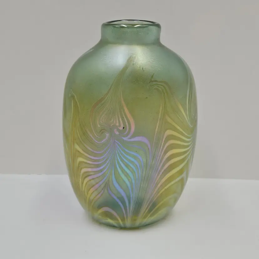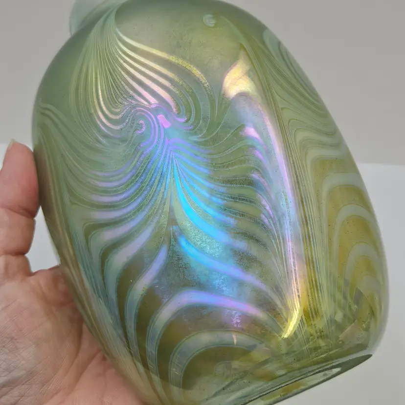 Glass vase signed Rosenfeld, 7"x4.75", no damage.