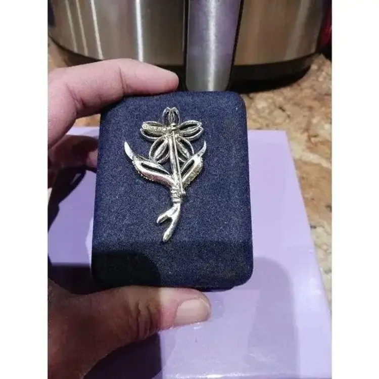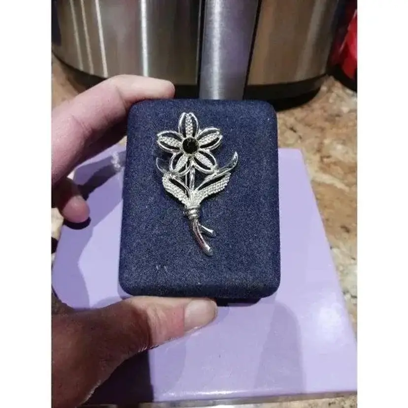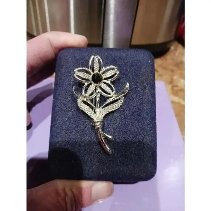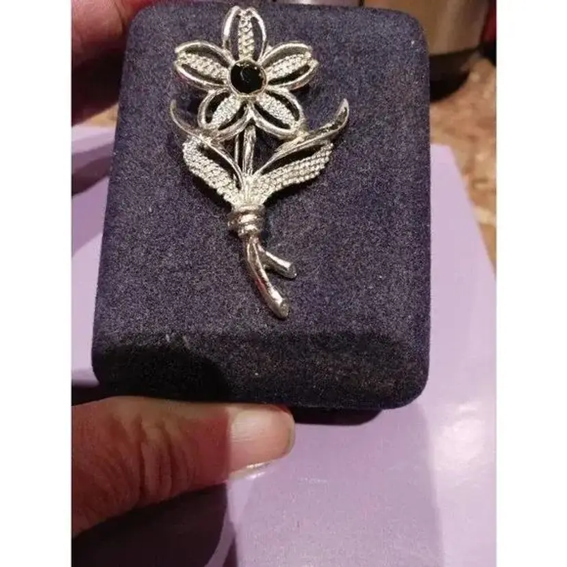 Vintage Signed Sarah Coventry Silver Tone Black Beauty Flower Brooch Pin. Pre-owned, Great condition.