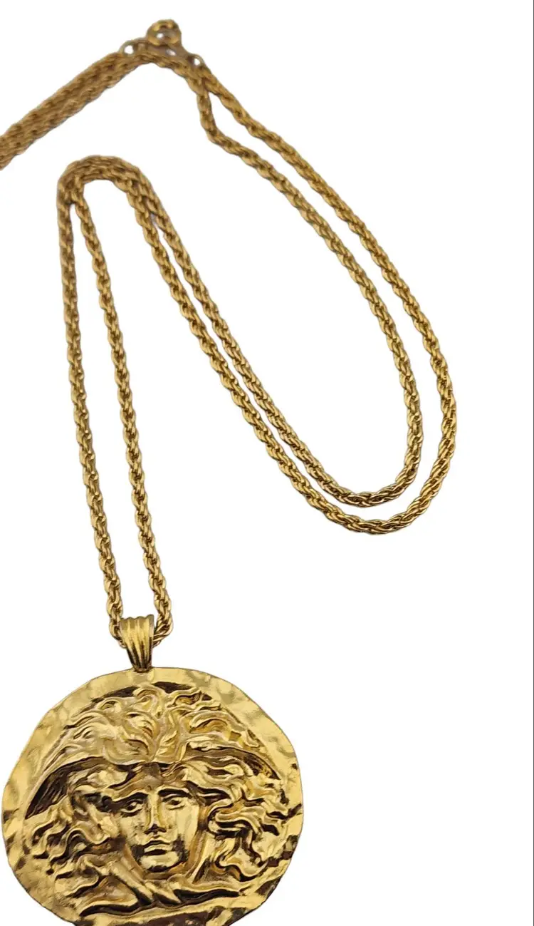 Vintage Signed Sphinx MB Medusa Head Charm Necklace (A3221)