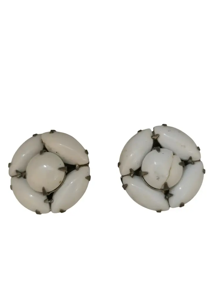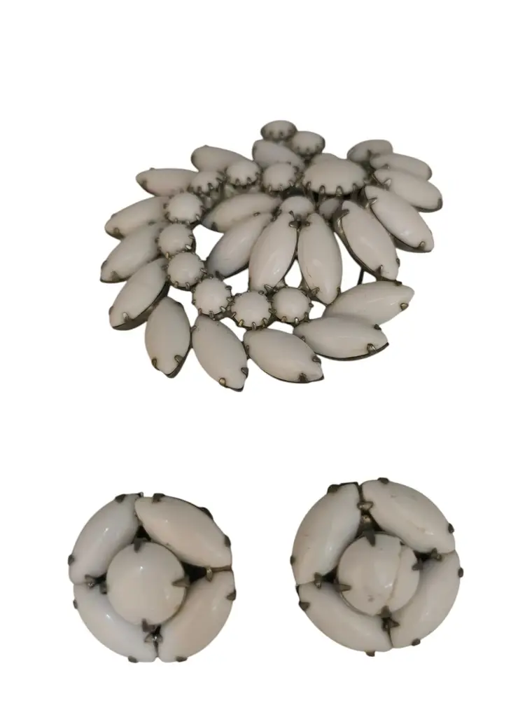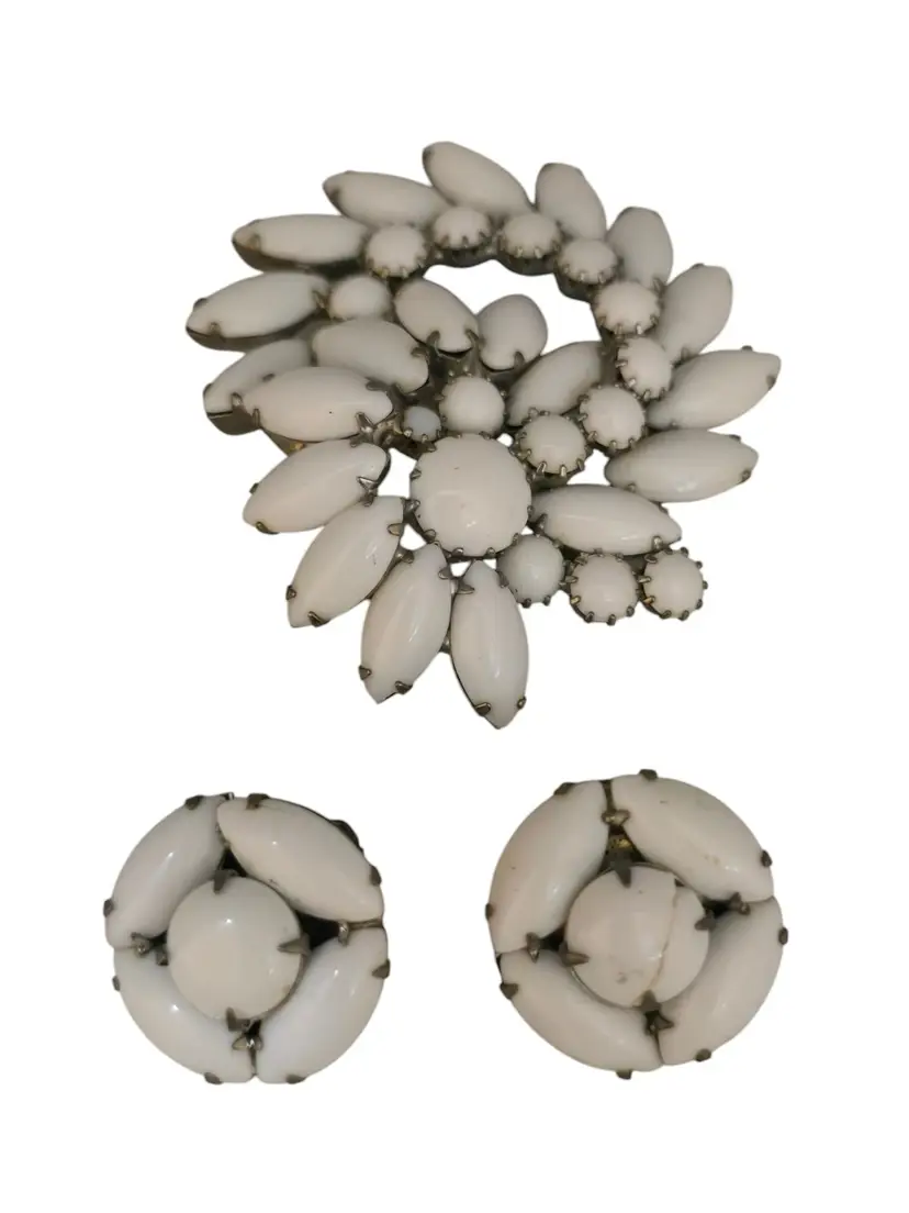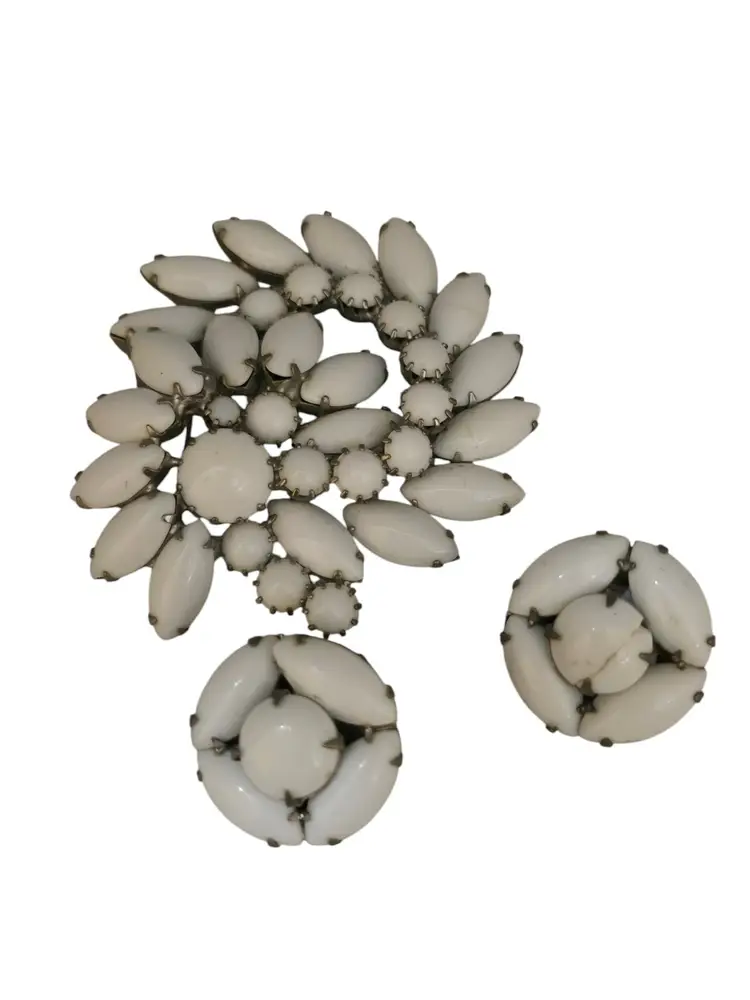 Vintage Signed Weiss Milk Glass Brooch Set (A7890)