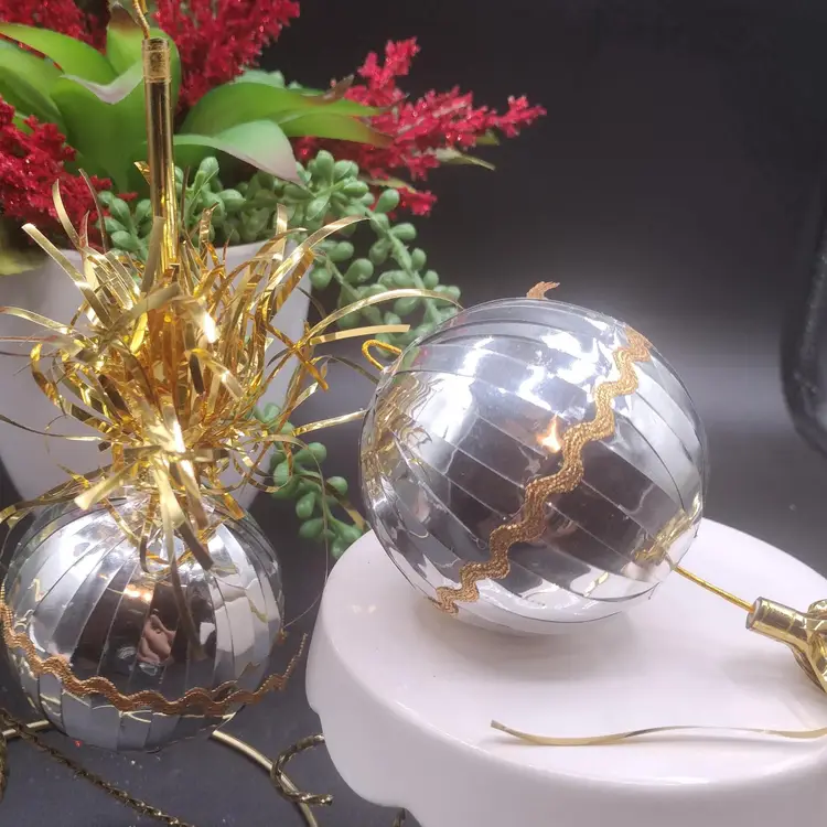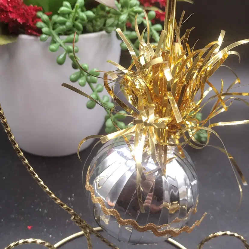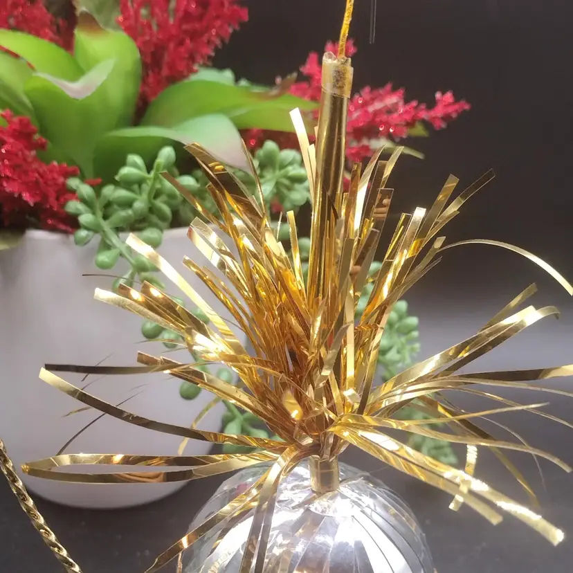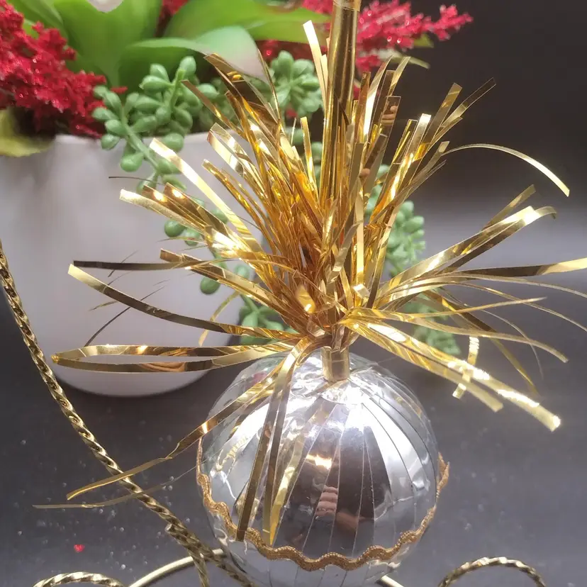 Add some vintage charm to your Christmas tree with this set of two round ornaments. The foil material gives a shimmering Silver tone finish, and the cascading/waterfall design adds a touch of elegance. Perfect for collectors or those looking to add some unique ornaments to their collection. These ornaments are sure to catch the eye and bring a touch of holiday cheer to your home.