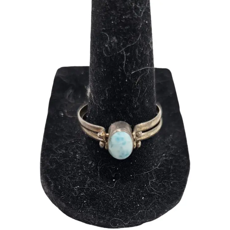 Elegant silver ring with a beautiful larimar stone. Perfect for any occasion.