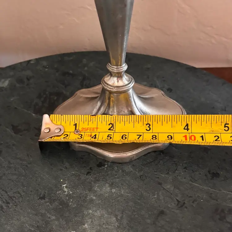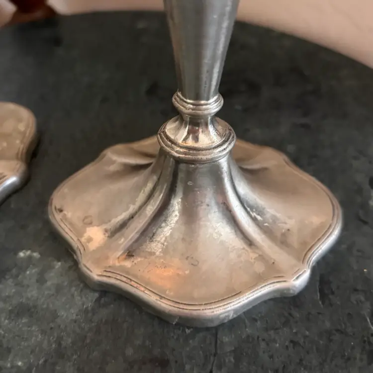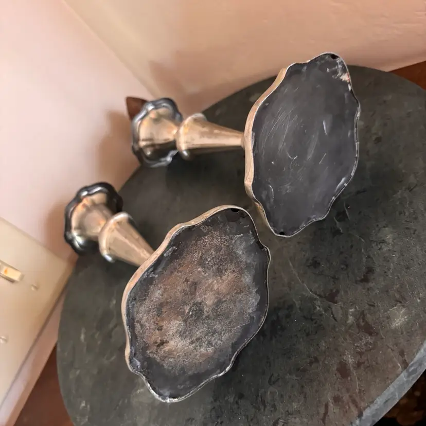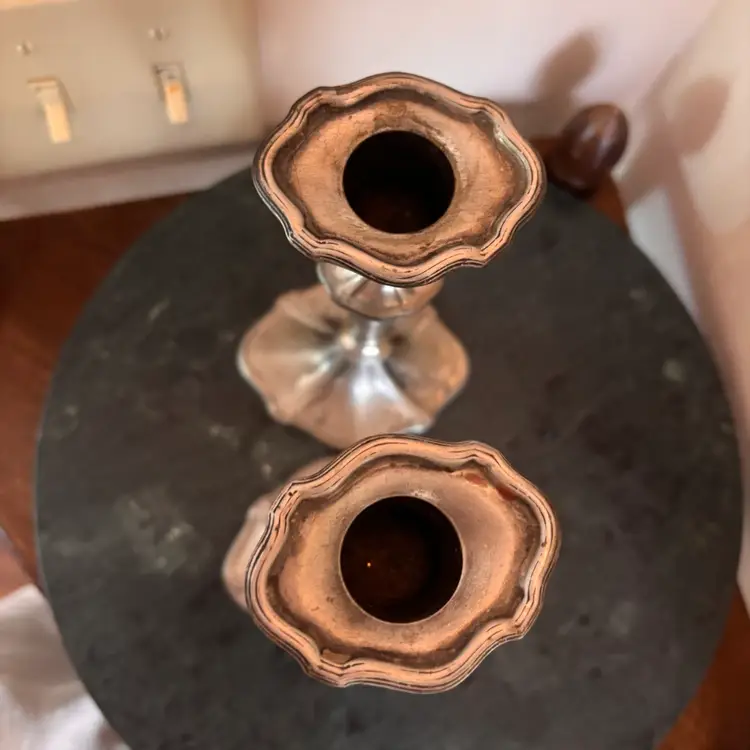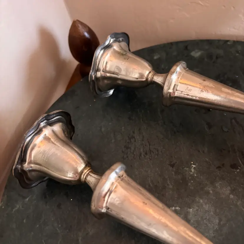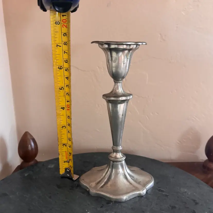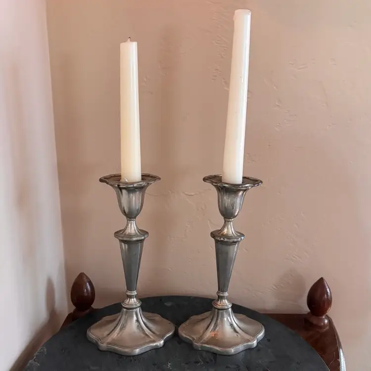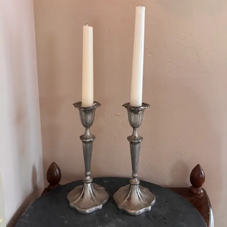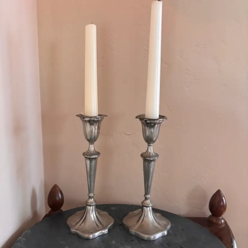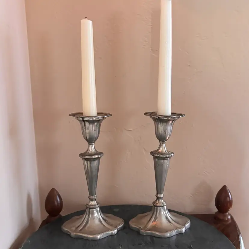 Classically elegant candlesticks 7”tall x 4”wide at base Vintage wear & patina as shown