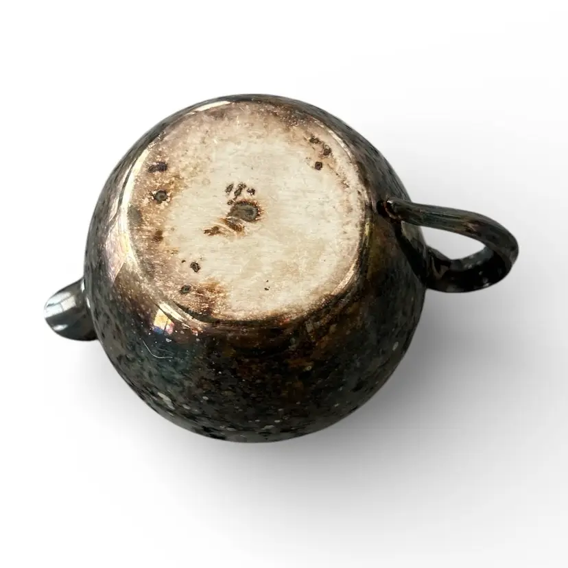 Add a touch of elegance to your decor with this vintage silver-plated creamer pitcher. Its charming patina and classic design make it a perfect addition to any collection or table setting. Size: 2.5” x 4.5”.