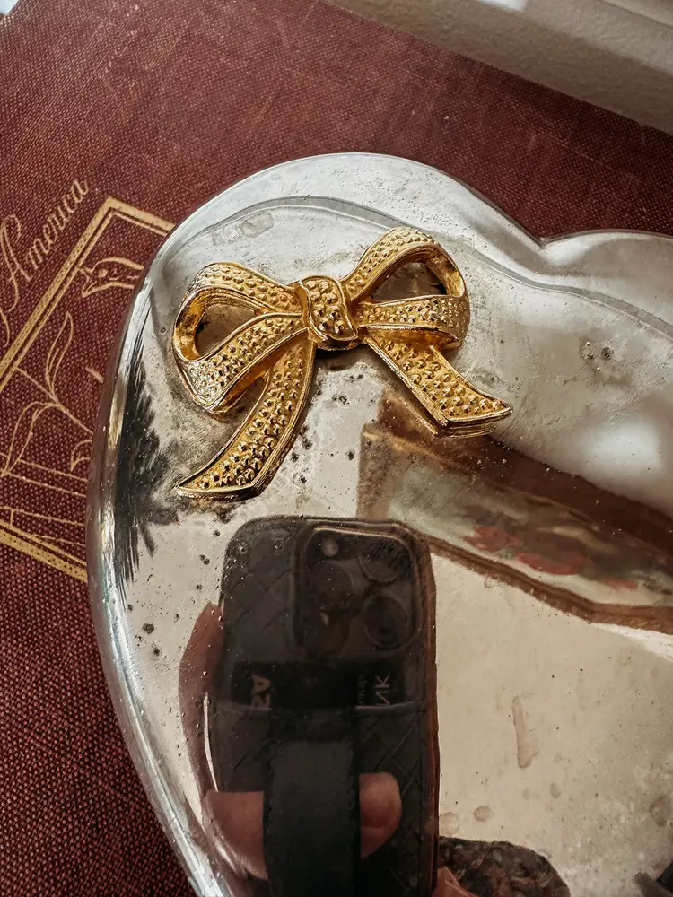 The Gold Bow makes this trinket box extra darling! 5"x5"x2"