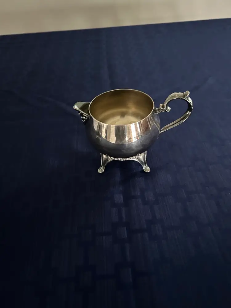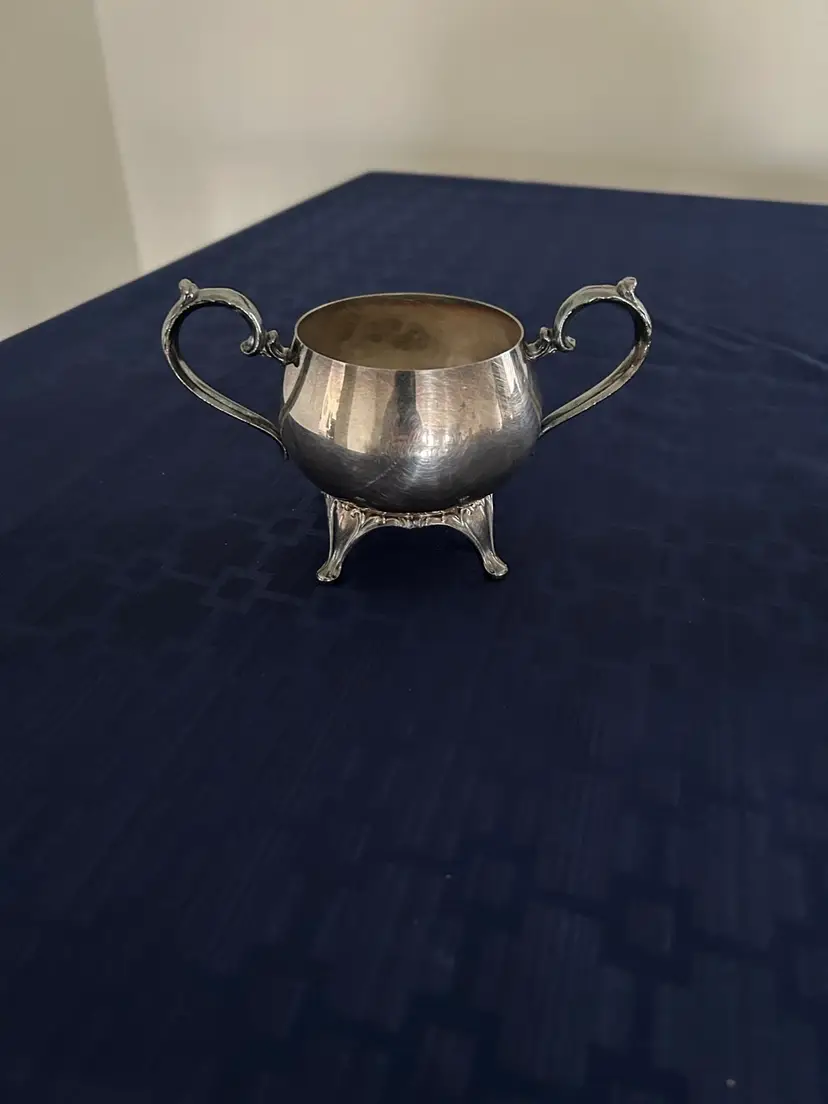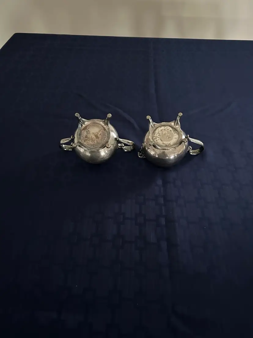 Enhance your dining experience with this elegant silver creamer and sugar bowl set. Perfect for adding a touch of sophistication to your table.wt 1.5#
