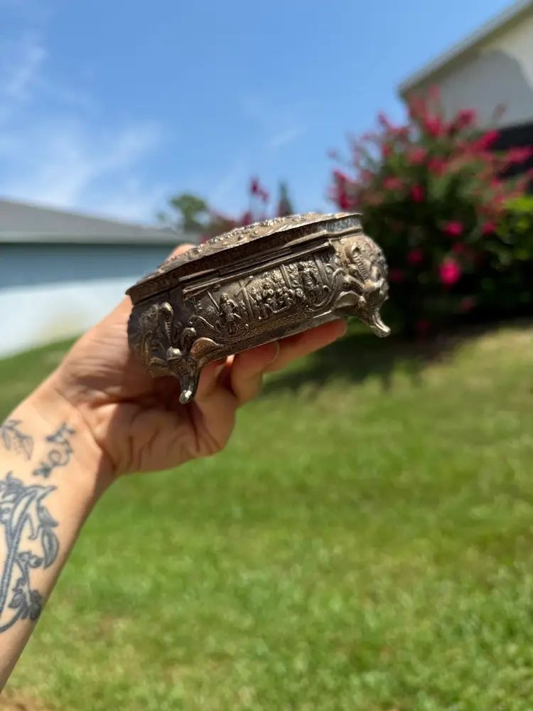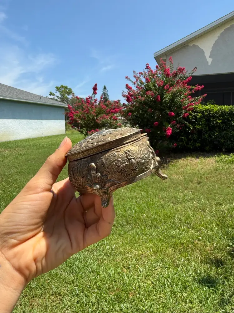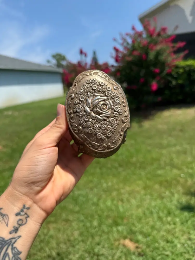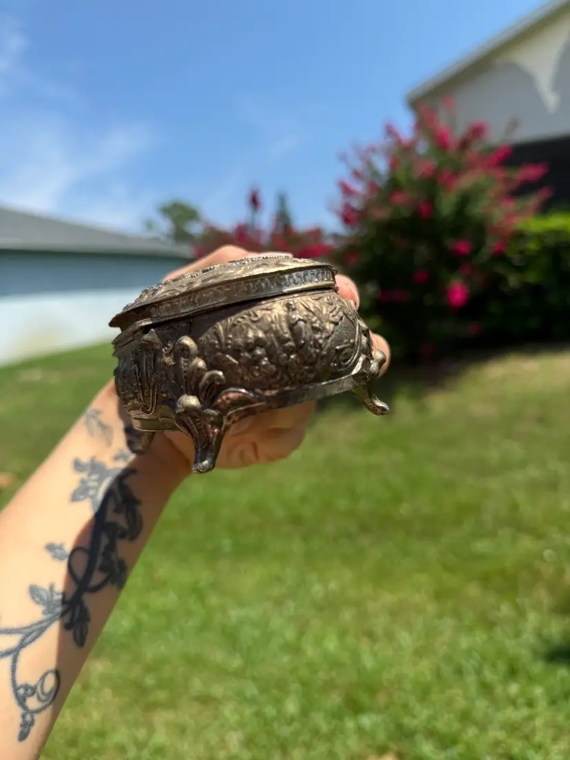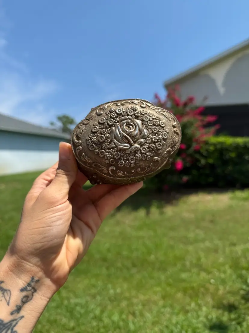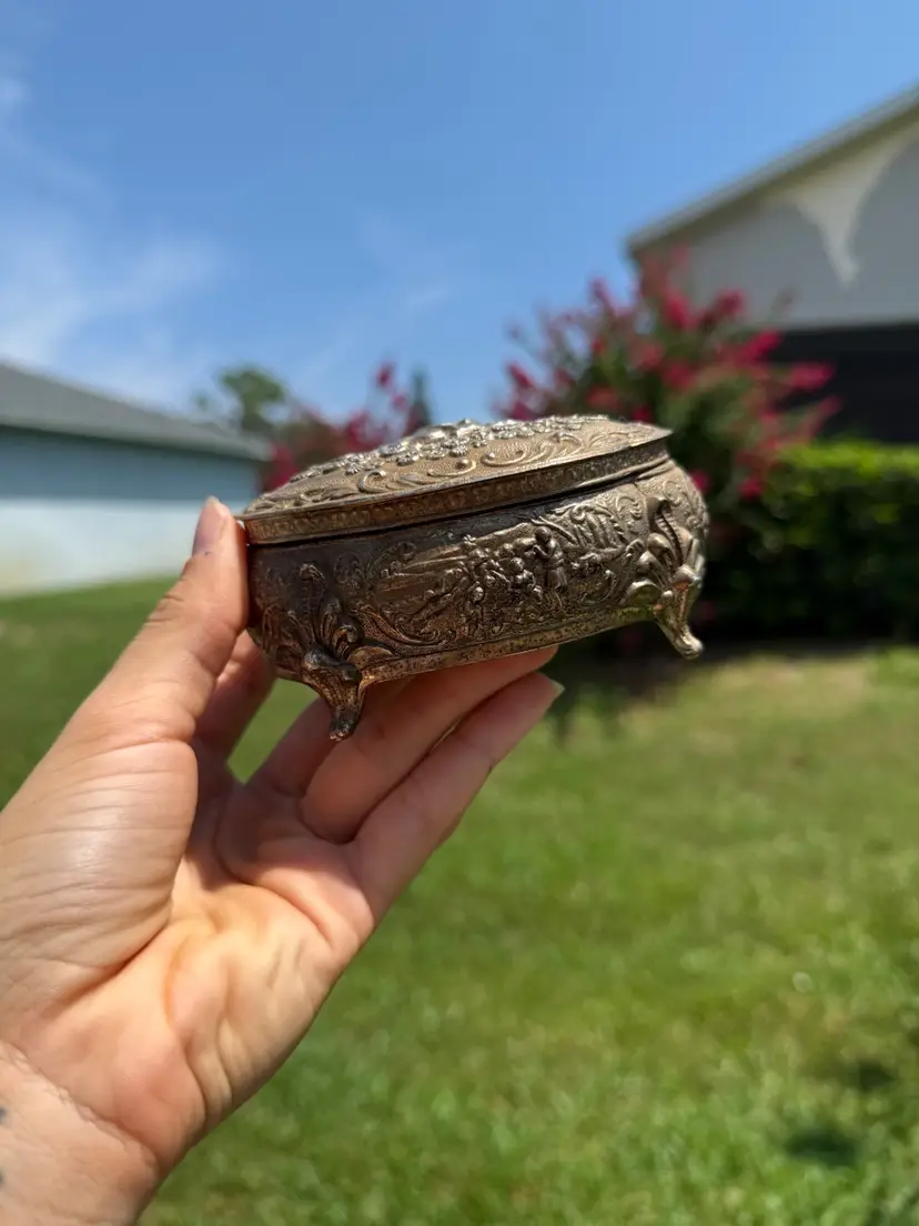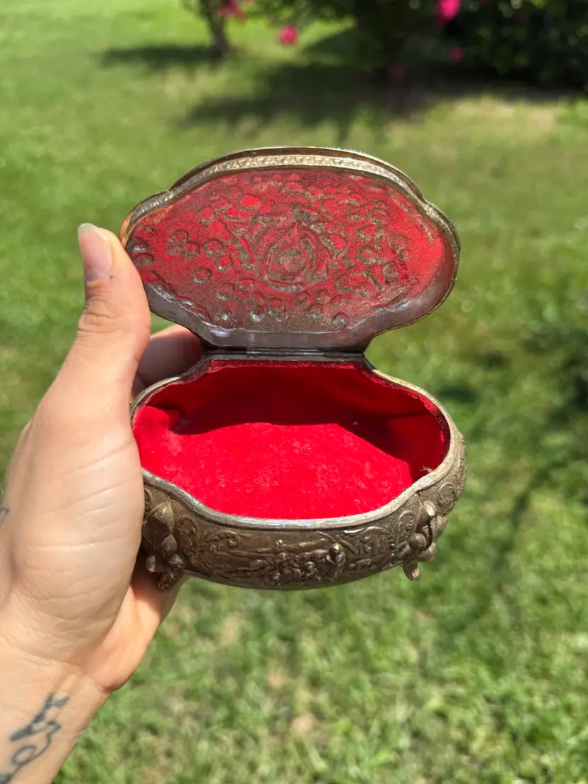 Good pre loved condition. There is some minor discoloration on the interior velvet but overall good shape.