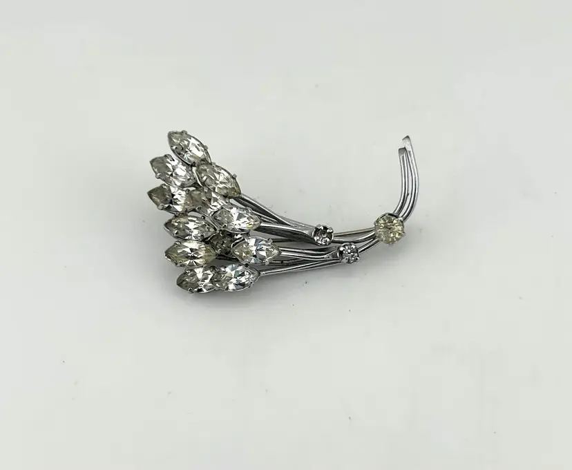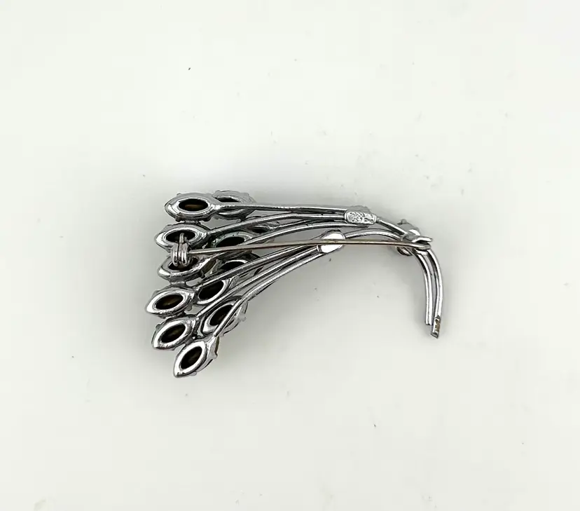 Vintage Silver Tone Austrian Crystal Brooch 2”x 1.25”
