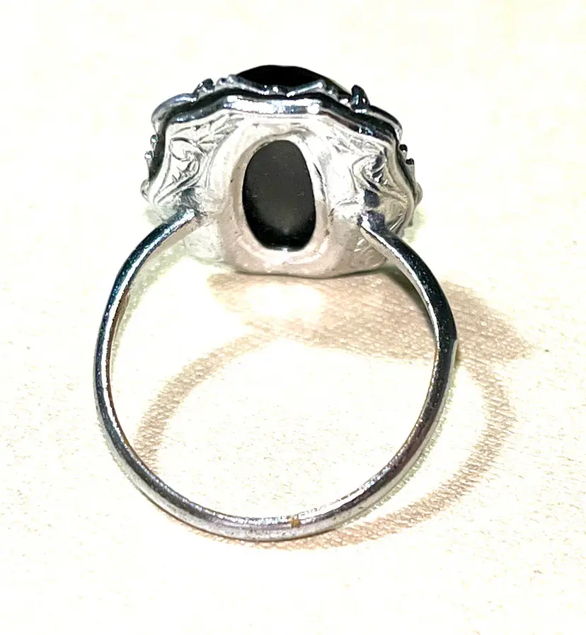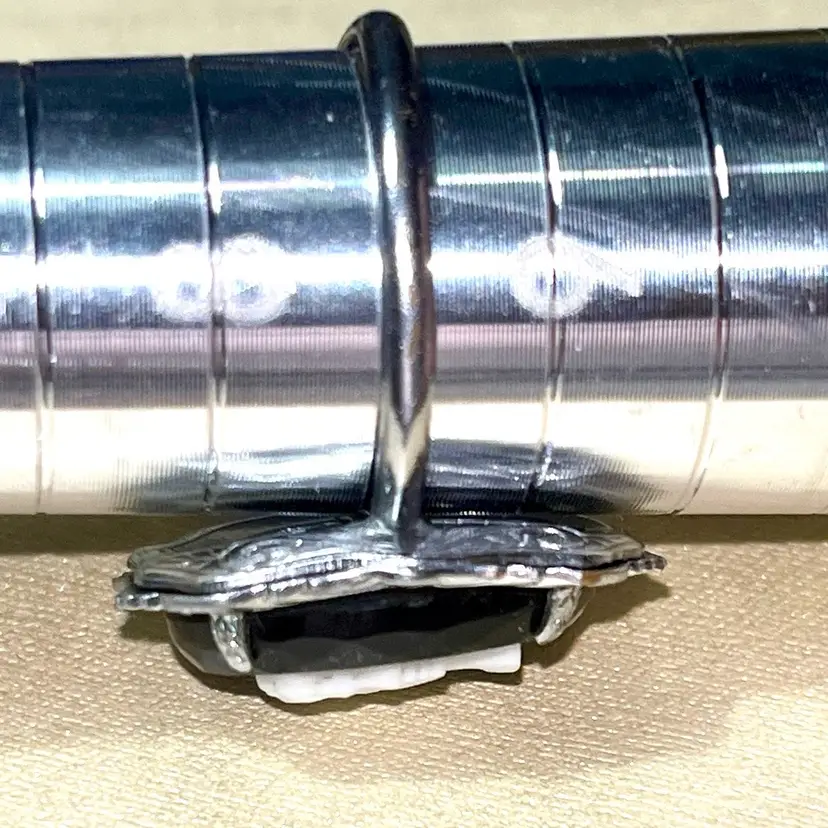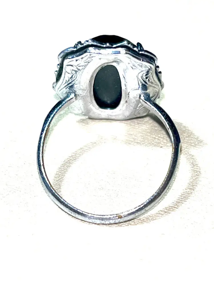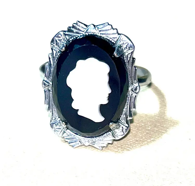 Vintage Silver Tone Black & White Cameo Ring. No Markings. Some Silver Tone Loss. Size 8.5