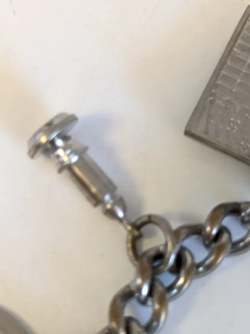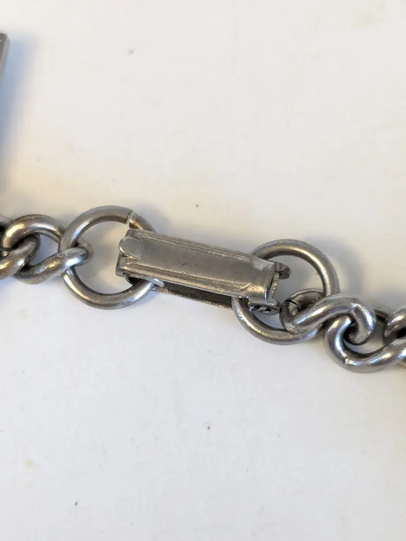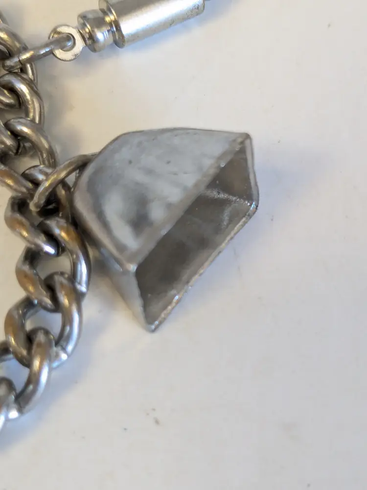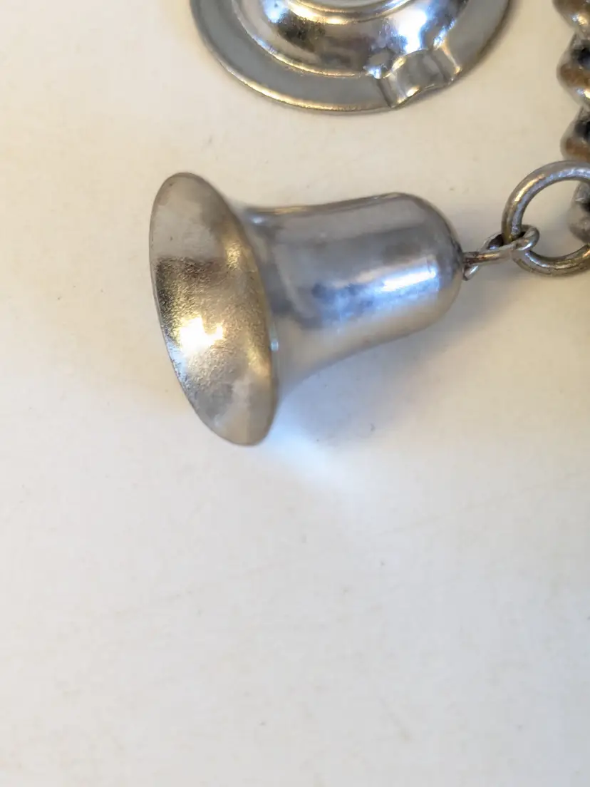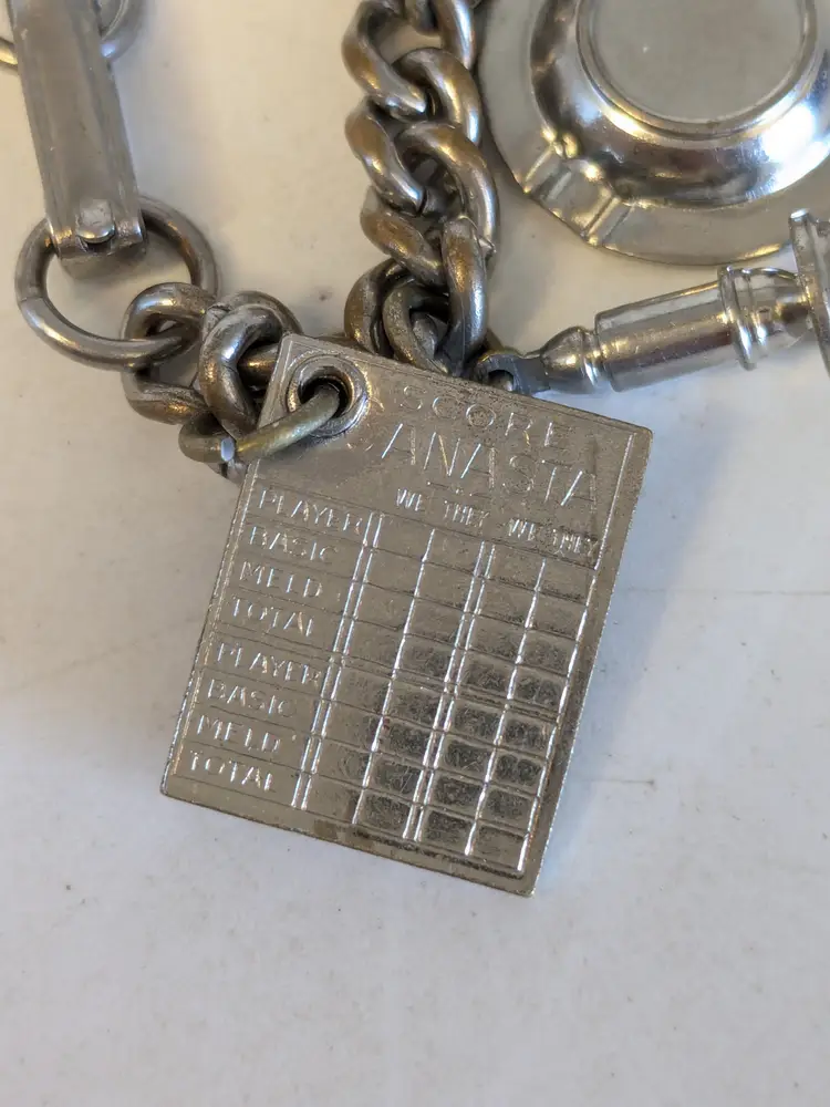 So kitschy! Good vintage condition. Silver tone. Bracelet has eight charms and a fold over clasp. Measures 6 1/2". wen