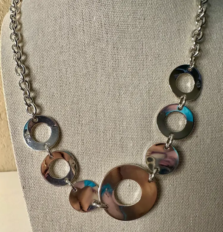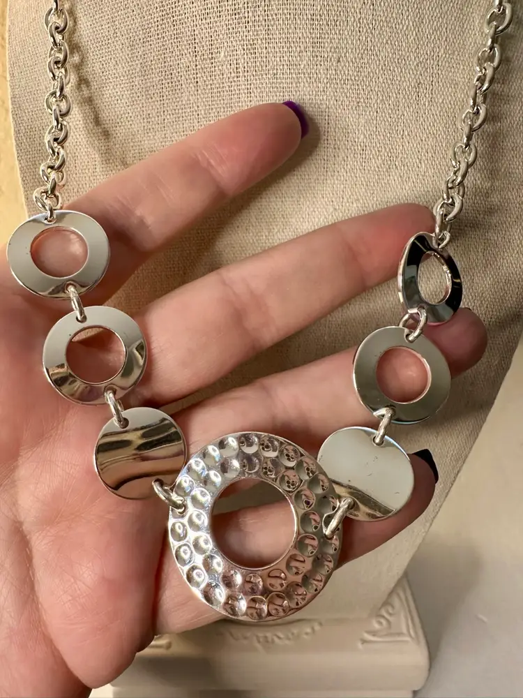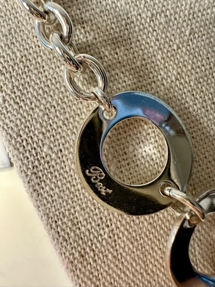 Beautiful vintage silver tone necklace marked “Best”. In excellent condition. Nice and Shiny! Timeless piece. 18 inches extended.