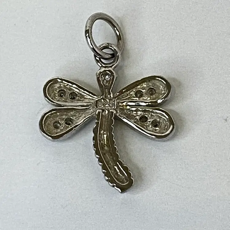 Vintage Silver Tone Pave Prong Set Rhinestone Dragonfly Pendant 925 NOT Silver. This is marked 925 but it is NOT silver, it is magnetic. Good vintage condition. Please see pictures for details. SMOKE FREE/PET FREE HOME Approximate measurements: Height- .8" Width- .75"