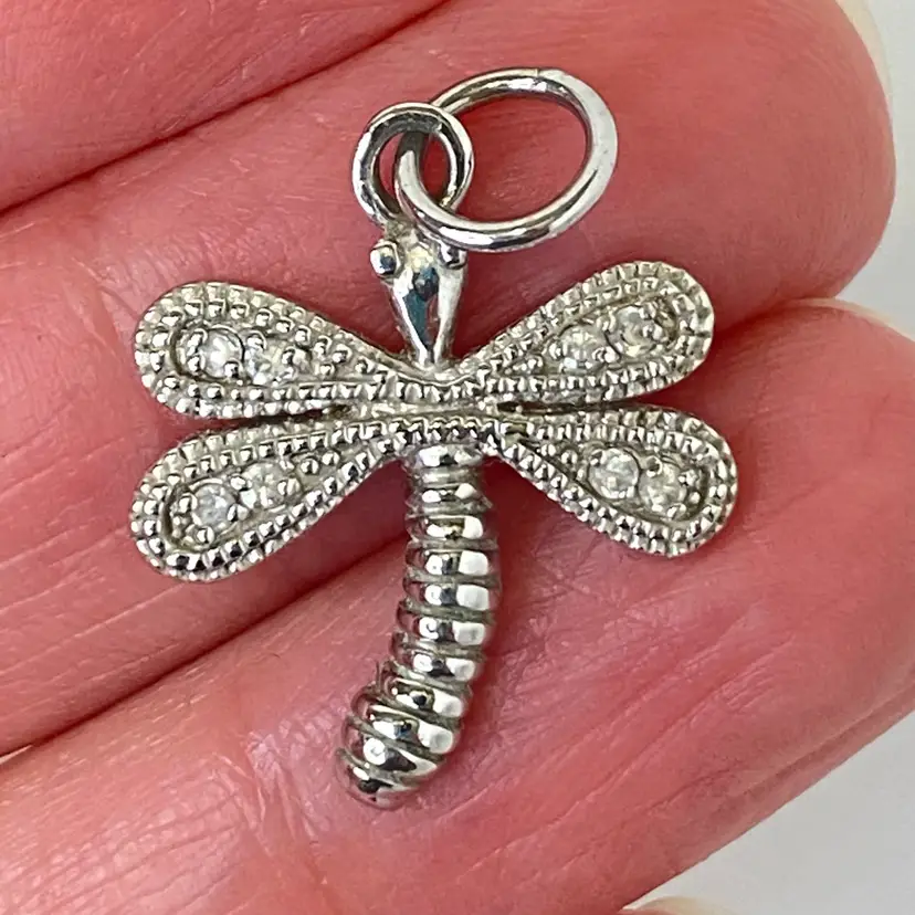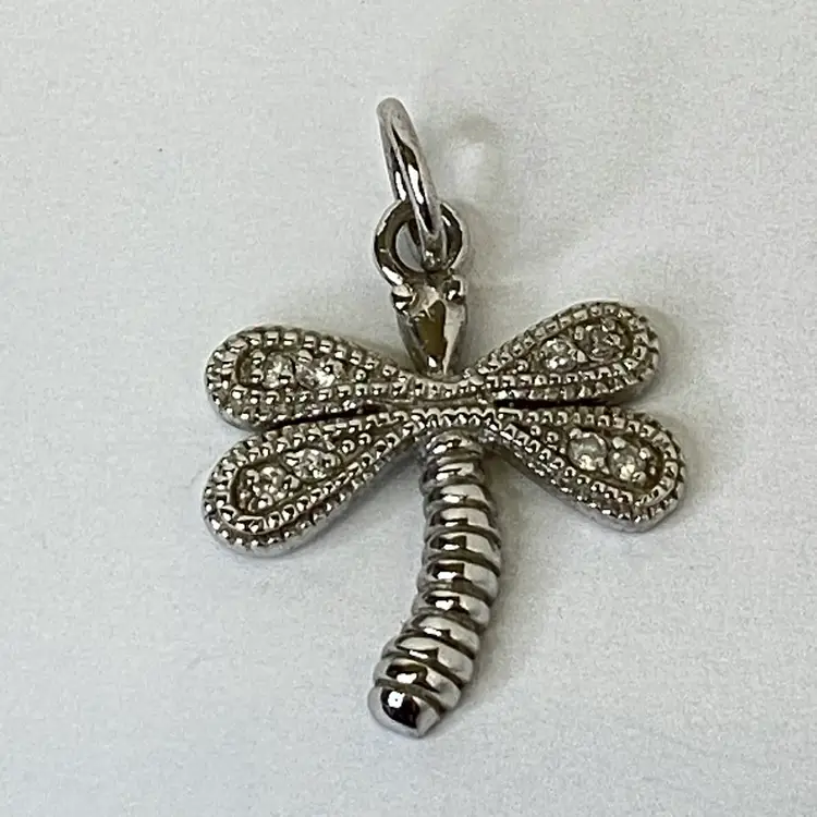 Add a touch of vintage charm to your jewelry collection with this stunning silver-tone pendant. The pendant features a beautiful dragonfly design with prong-set rhinestones. The dragonfly is timeless, making this pendant a perfect choice for anyone who loves nature or wants to add a touch of elegance to their outfit. The pendant is perfect for any occasion, whether you're going out for a casual lunch or attending a formal event.