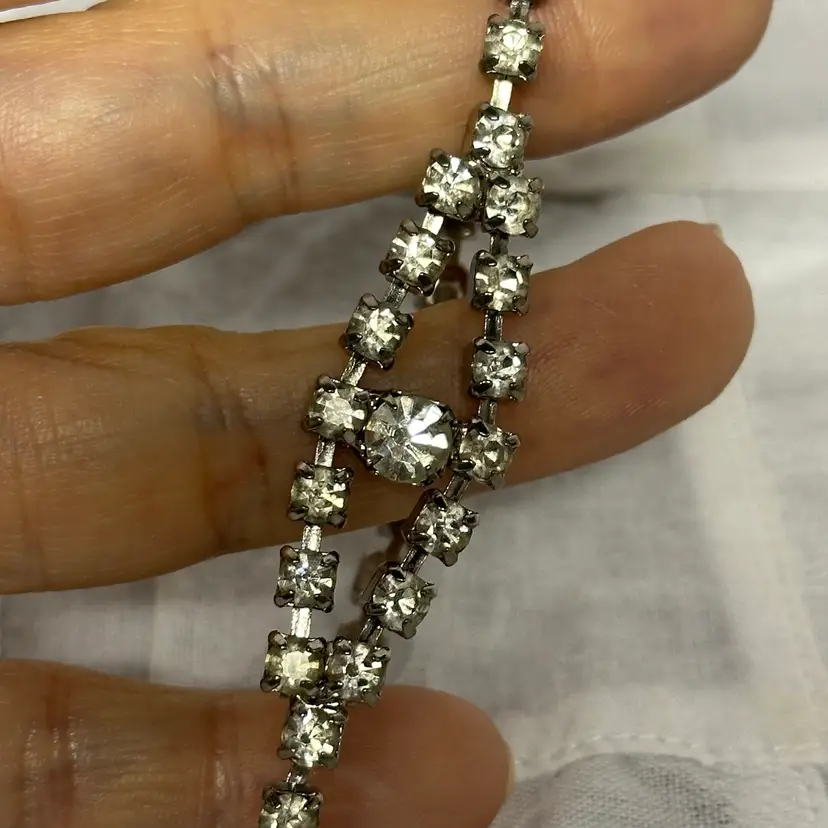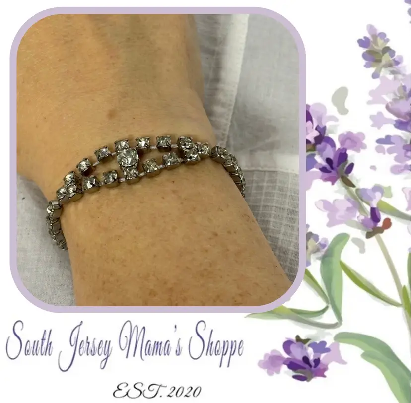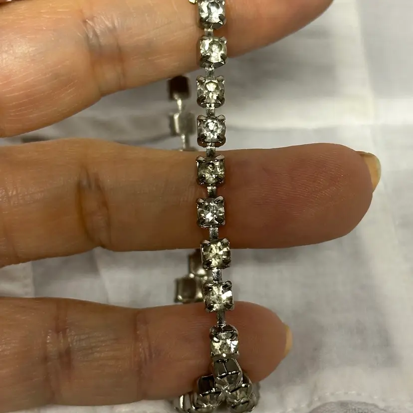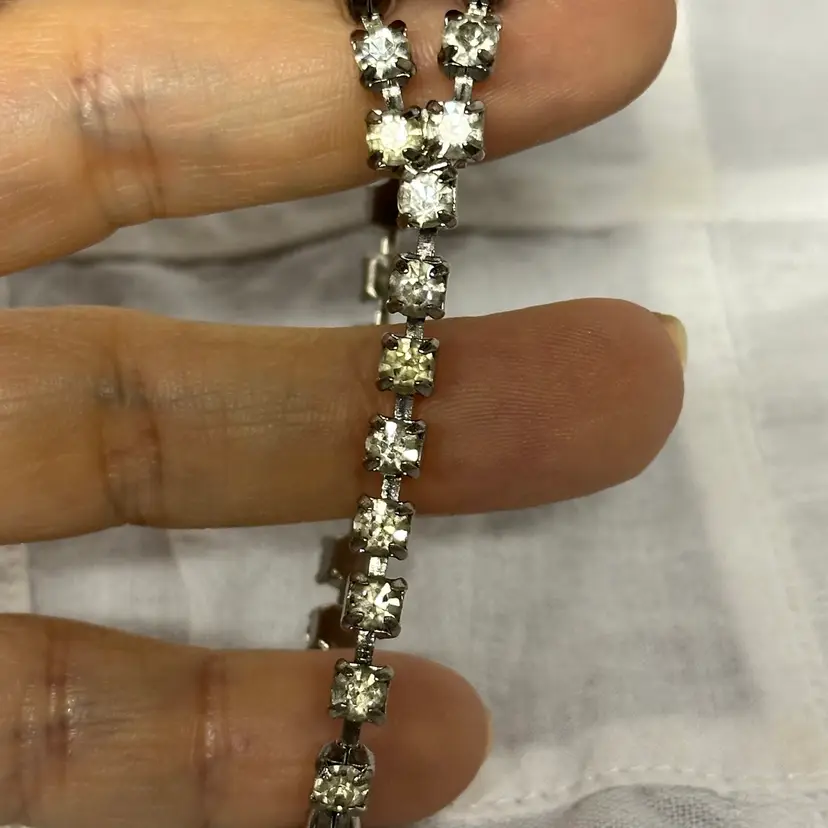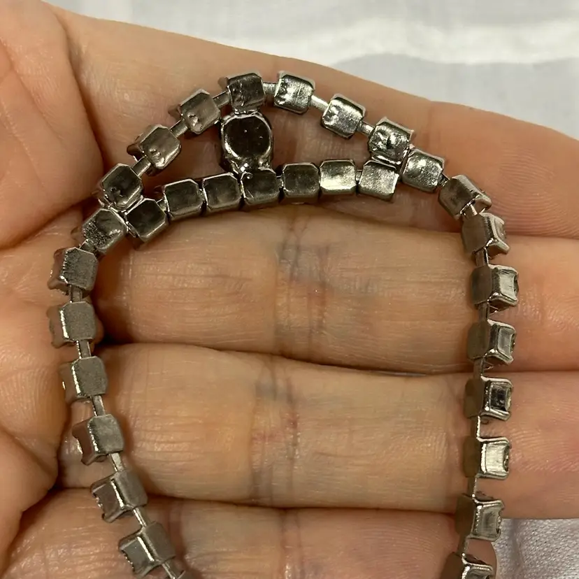 This a beautiful bracelet. One stone is slightly yellowed as shown, however, overall it is in nice condition. Approx. 6 1/2”