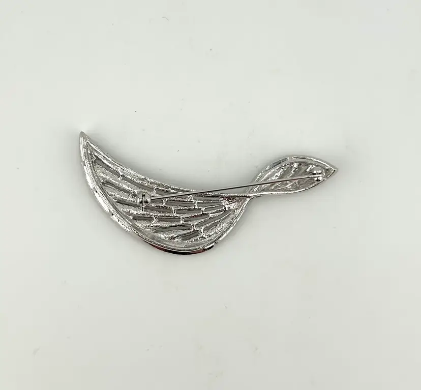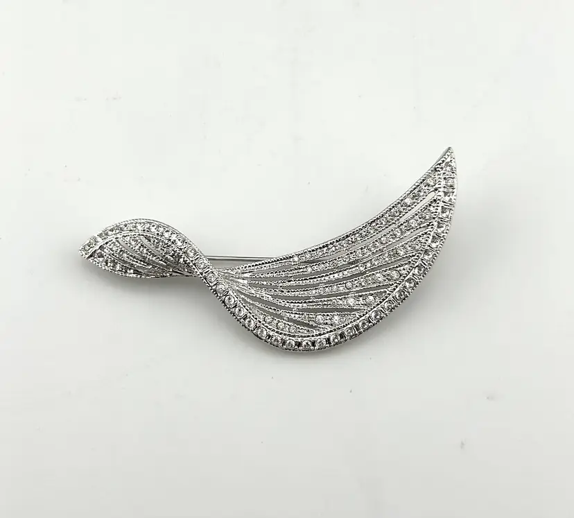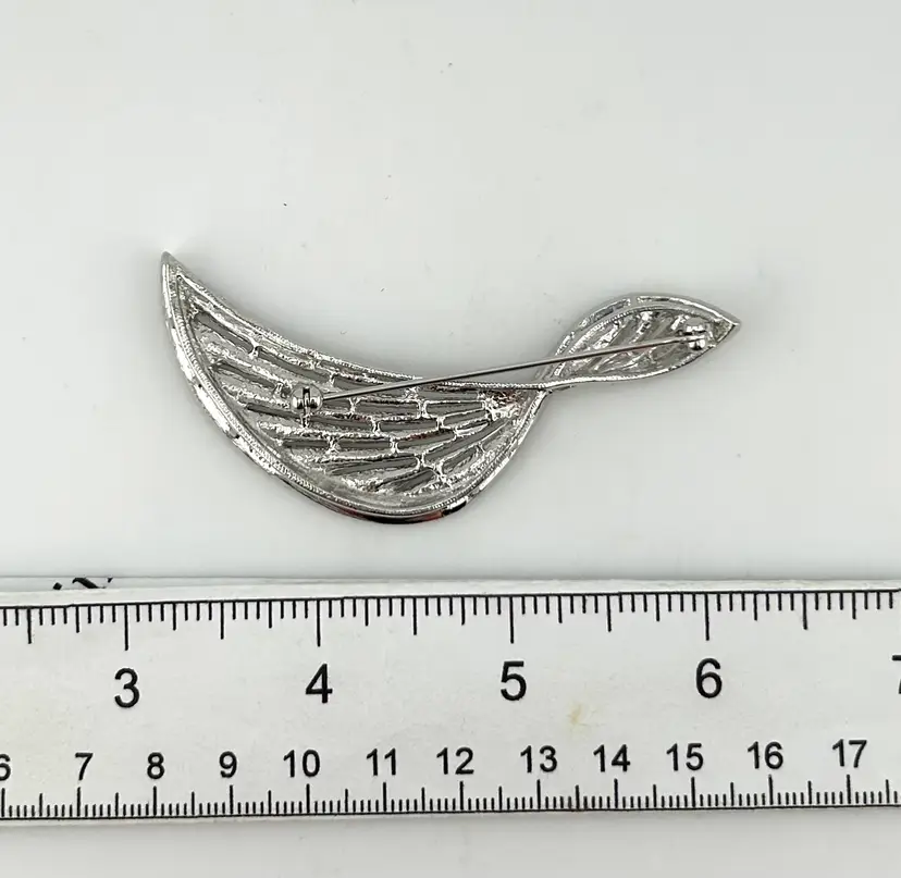Vintage Silver Tone Rhinestone Brooch 3.25”x 1.5”