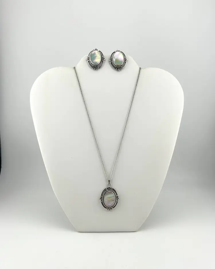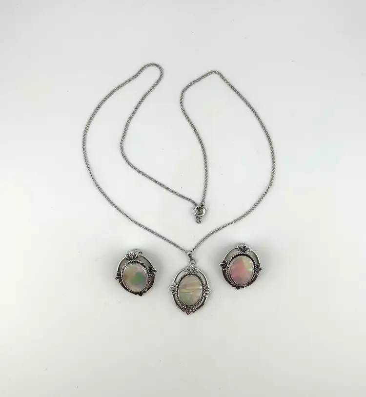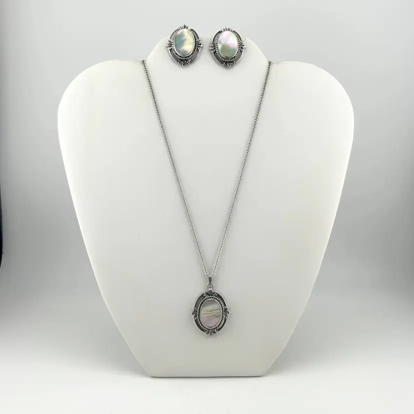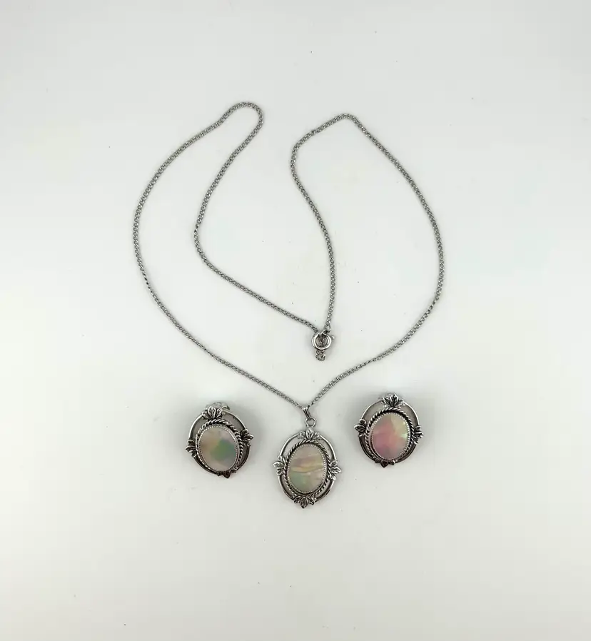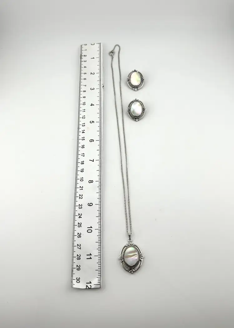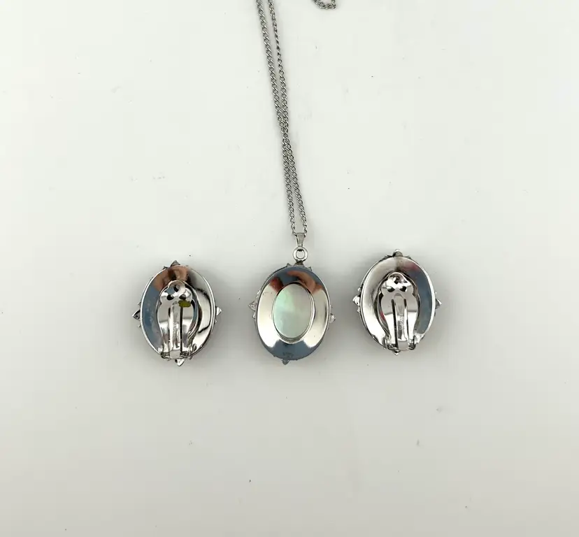 Chain is 20” Pendant is 1” Clip-on earrings are 1”