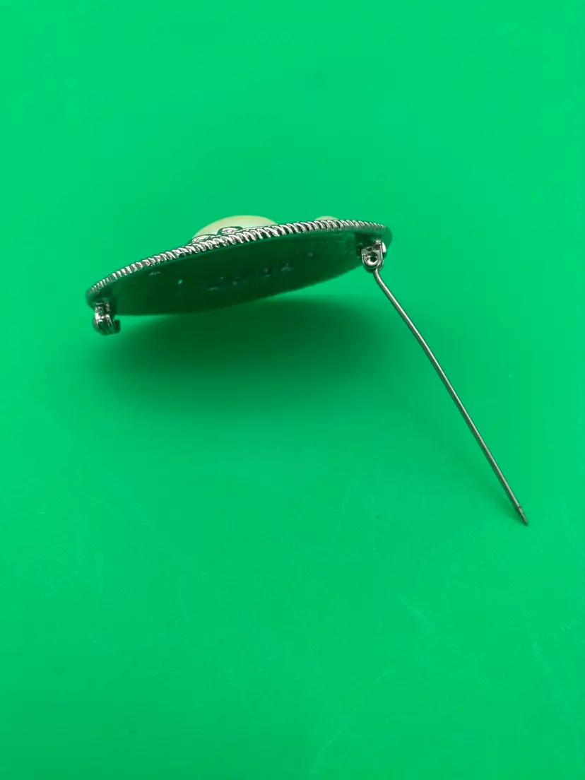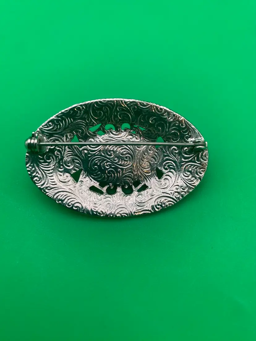 You are purchasing one Women's Silver-Tone w/ Imitation Pearls Oval Shaped Brooch. This Brooch is around 2 inches wide and 1.25 inches tall. This Brooch is in great condition with no chips, cracks or discoloration.