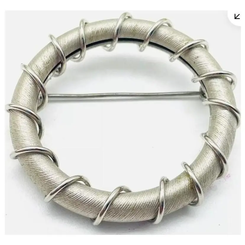 Elegant and timeless, this 2-inch vintage brooch features a silver tone wrapped design. Perfect for adding a touch of sophistication to any outfit.