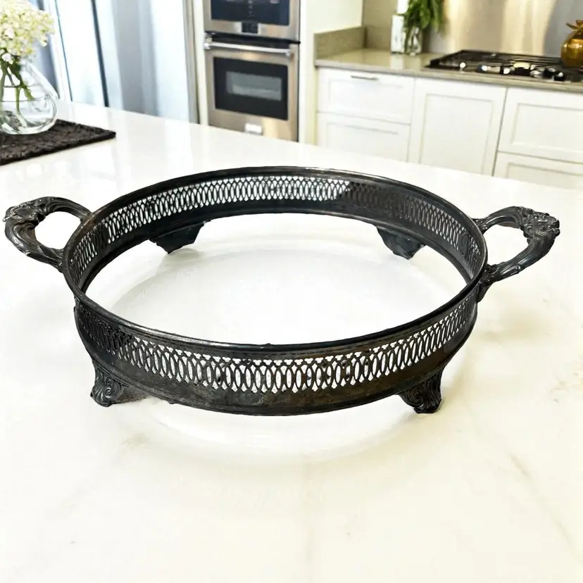 014 Vintage Silverplate 4 Legs 9.75" Interior Casserole Holder