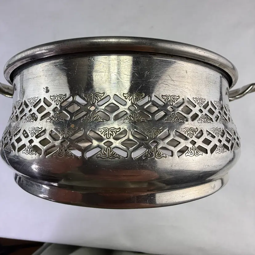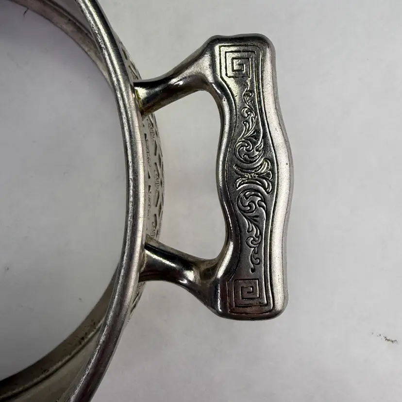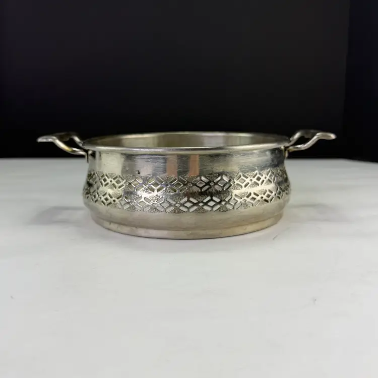 Vintage Silverplate Filigree Serving Dish Ring With Handles